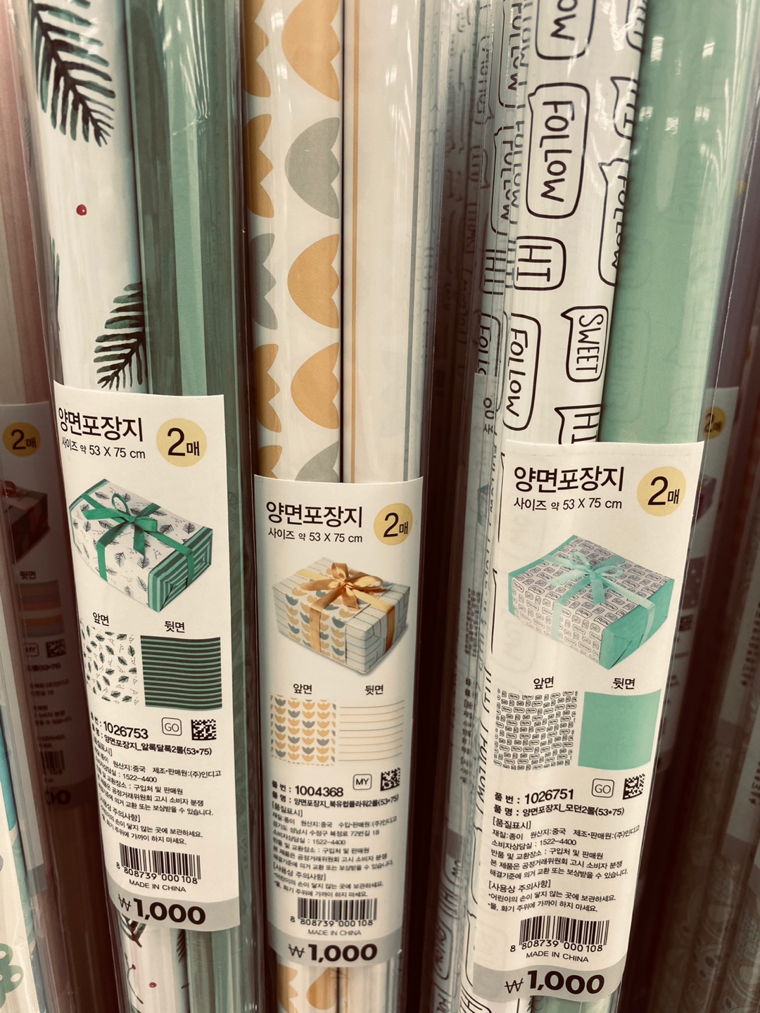 양면 포장지의 경우 2 롤에 천 원이 일반적이다.