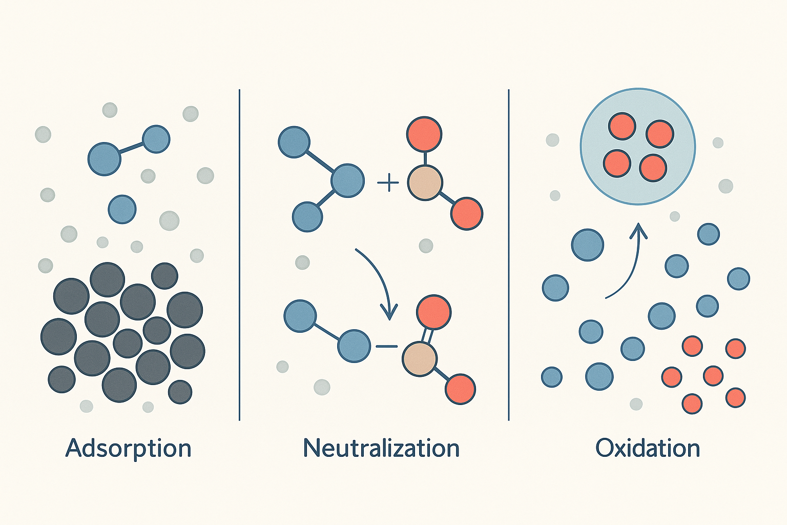즉, 공기 중의 냄새 분자를 붙잡거나 중화하거나, 아예 분해해버리는 화학반응의 결과물이죠
