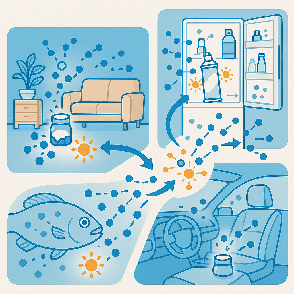 이번 시간에는 무심코 뿌리는 탈취 스프레이 안에 숨어 있는 생활 속 화학의 원리를 풀어보려 합니다.