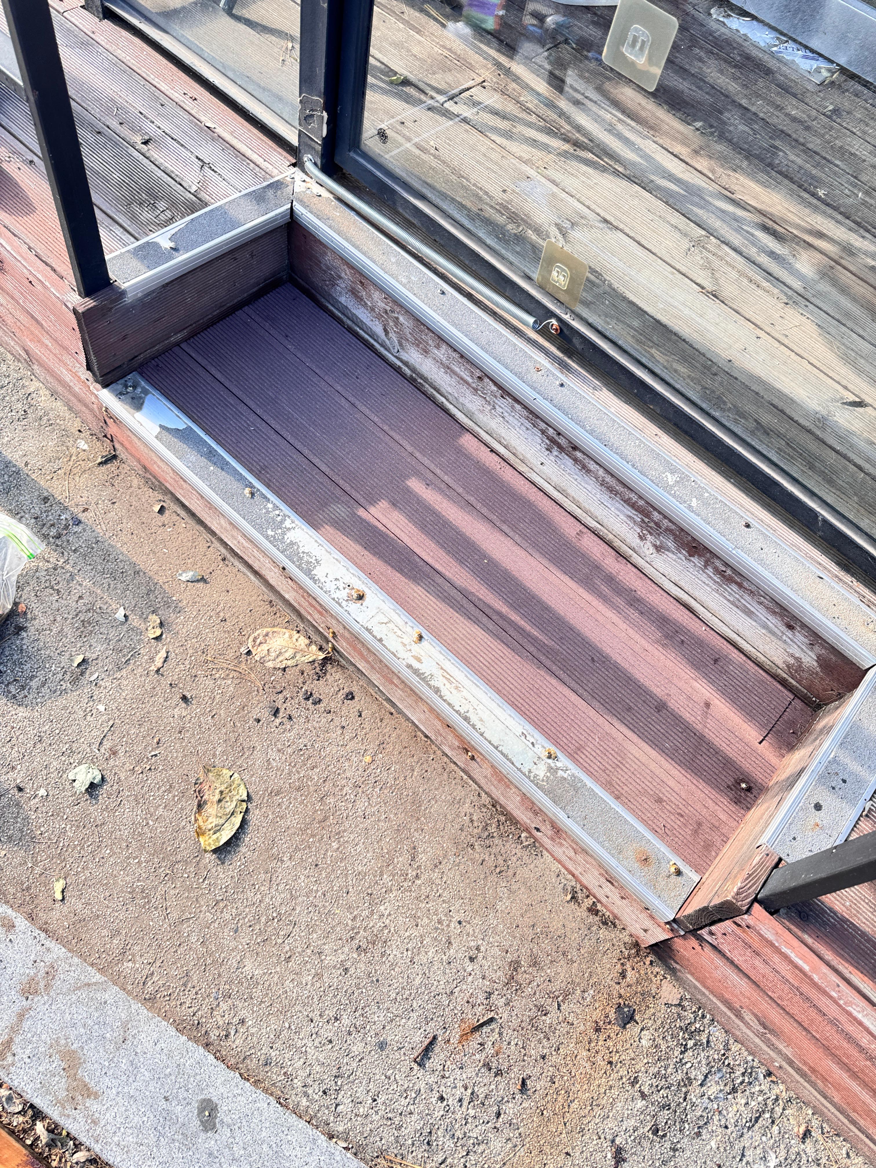 썩은 나무를 전부 뜯어내고 남은 못이나 피스 자국은 모두 갈아낸 뒤, 이물질과 먼지를 깨끗이 제거해 주었습니다. 이 청소 과정을 대충 하면 새 판재가 제대로 밀착되지 않습니다.