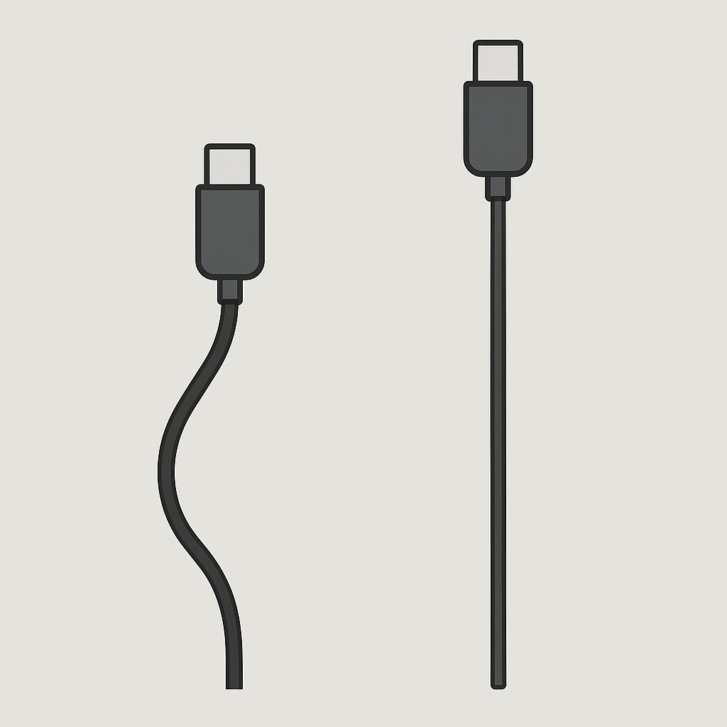같은 충전기라도, 케이블의 품질에 따라 충전 속도는 크게 달라집니다. 겉보기엔 비슷해 보여도 내부 구조는 완전히 다릅니다.