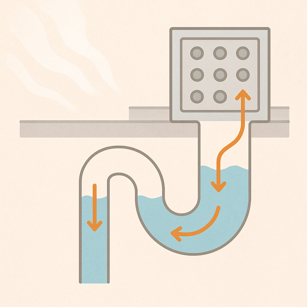 배수구 안에는 ‘트랩(Trap)’이라는 U자형 구조가 있는데, 이곳에 물이 고여서 냄새가 올라오지 않도록 막는 역할을 합니다.
