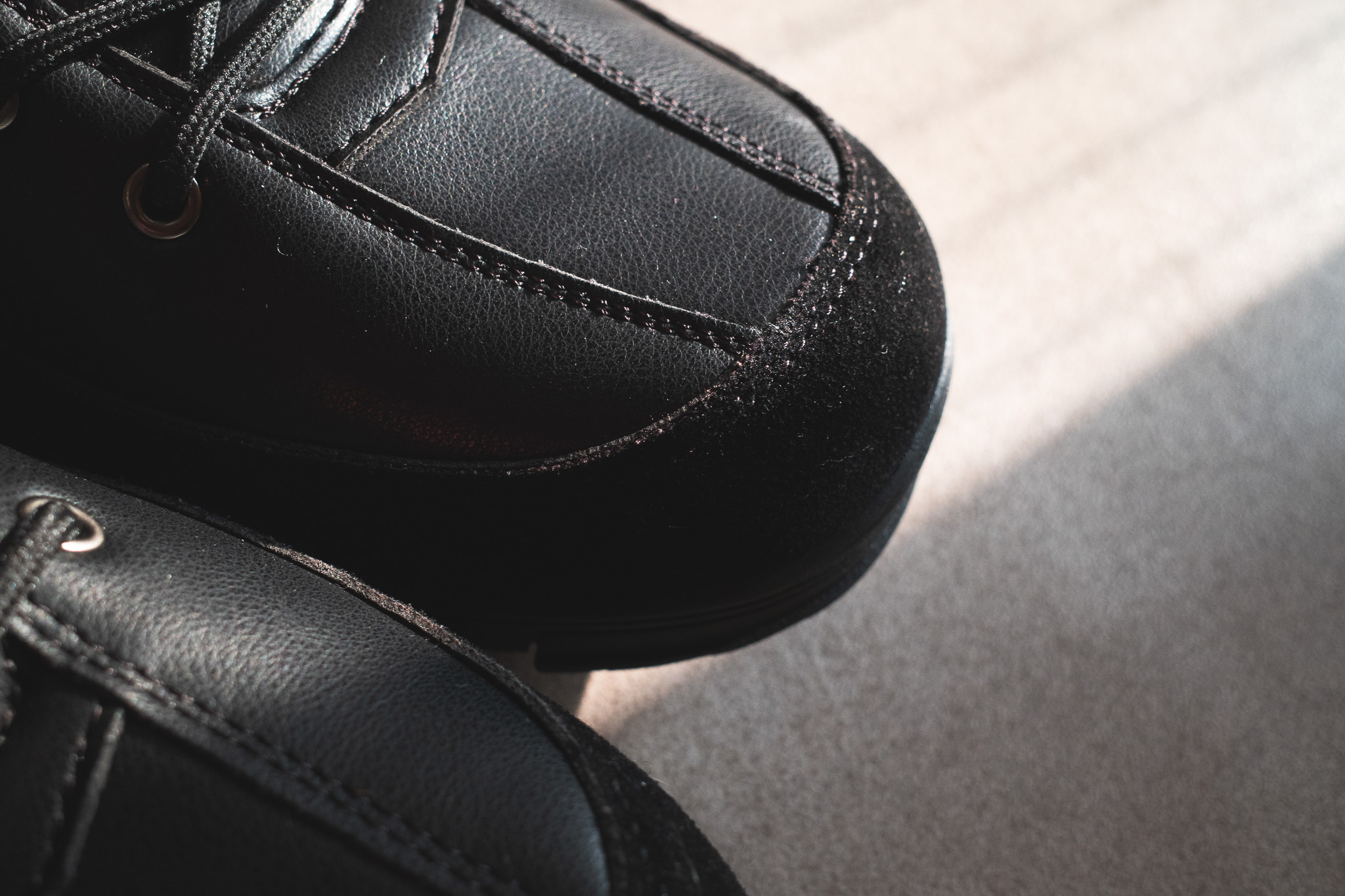 앞코랑 뒤꿈치 부분은 이렇게 스웨이드 처리가 되어 있습니다. 그러니까 인조가죽?+ 스웨이드 처리입니다. 상세페이지 어디에 봐도 방수 이야기는 없는 것 보니 생활 방수도 살짝 버거울 것 같기는 합니다. 다만 저는 비, 눈 오는 날 바이크를 아예 안 타기 때문에. 큰 상관은 없습니다. 하지만 방수 성능을 필요로 하시는 분은 이 부분 꼭 체크하세요.