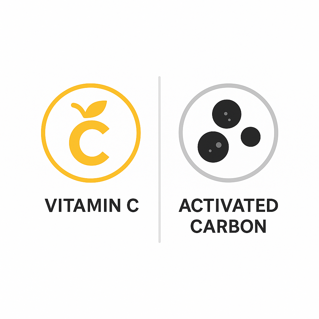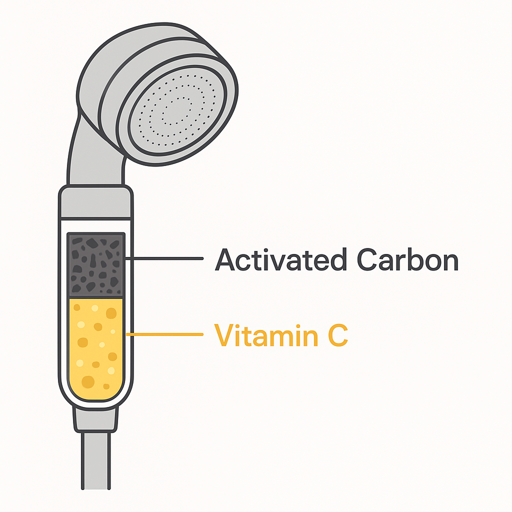 활성탄 필터는 넓은 표면으로 냄새를 흡착해 제거하고, 비타민C 필터는 화학 반응을 통해 염소를 중화시킵니다.