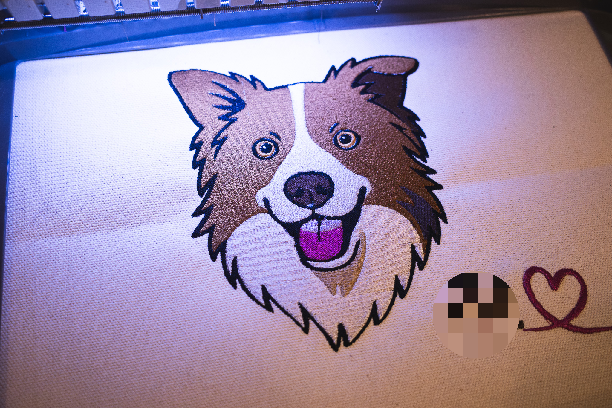 에코백에 반려동물 자수를 넣는 작업은 생각보다 시간이 많이 걸린다. 사진을 보고 디자인을 다시 그려 이미지 파일로 만들고 색상도 하나하나 내가 가지고 있는 자수실에 맞춰 선택을 해야 하고, 스티치 항목부터 땀수까지 다 하나하나 조절해줘야 한다. 디자인 작업 빼고 만드는 시간만 4시간 정도 소요가 되는 것 같다.