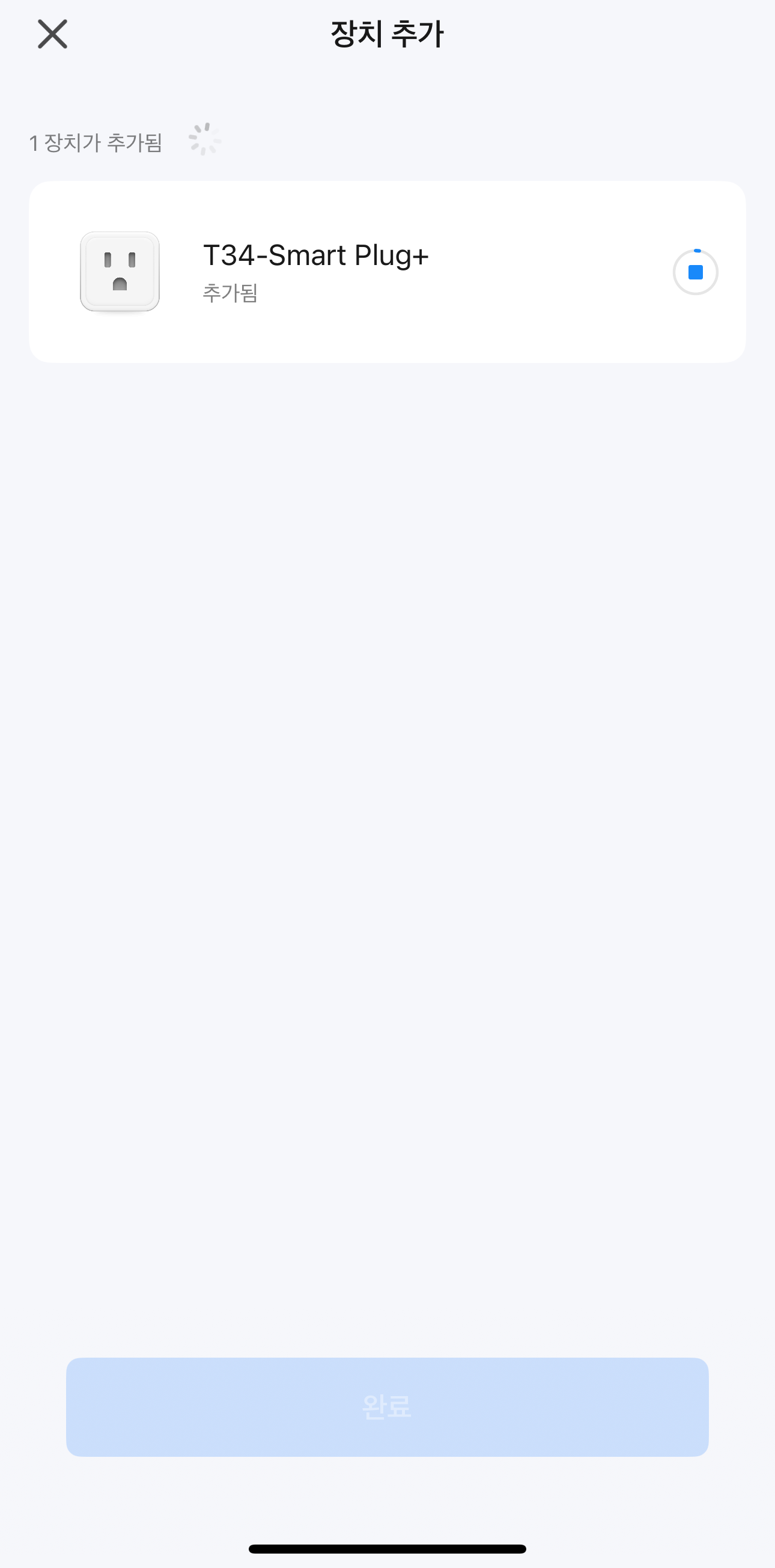 스마트플러그의 전원 버튼을 길게 (5초) 누르면 LED가 깜빡거리면서 페어링 모드로 들어가는데, 앱이 이 신호를 감지하면 바로 연결 단계로 넘어간다.