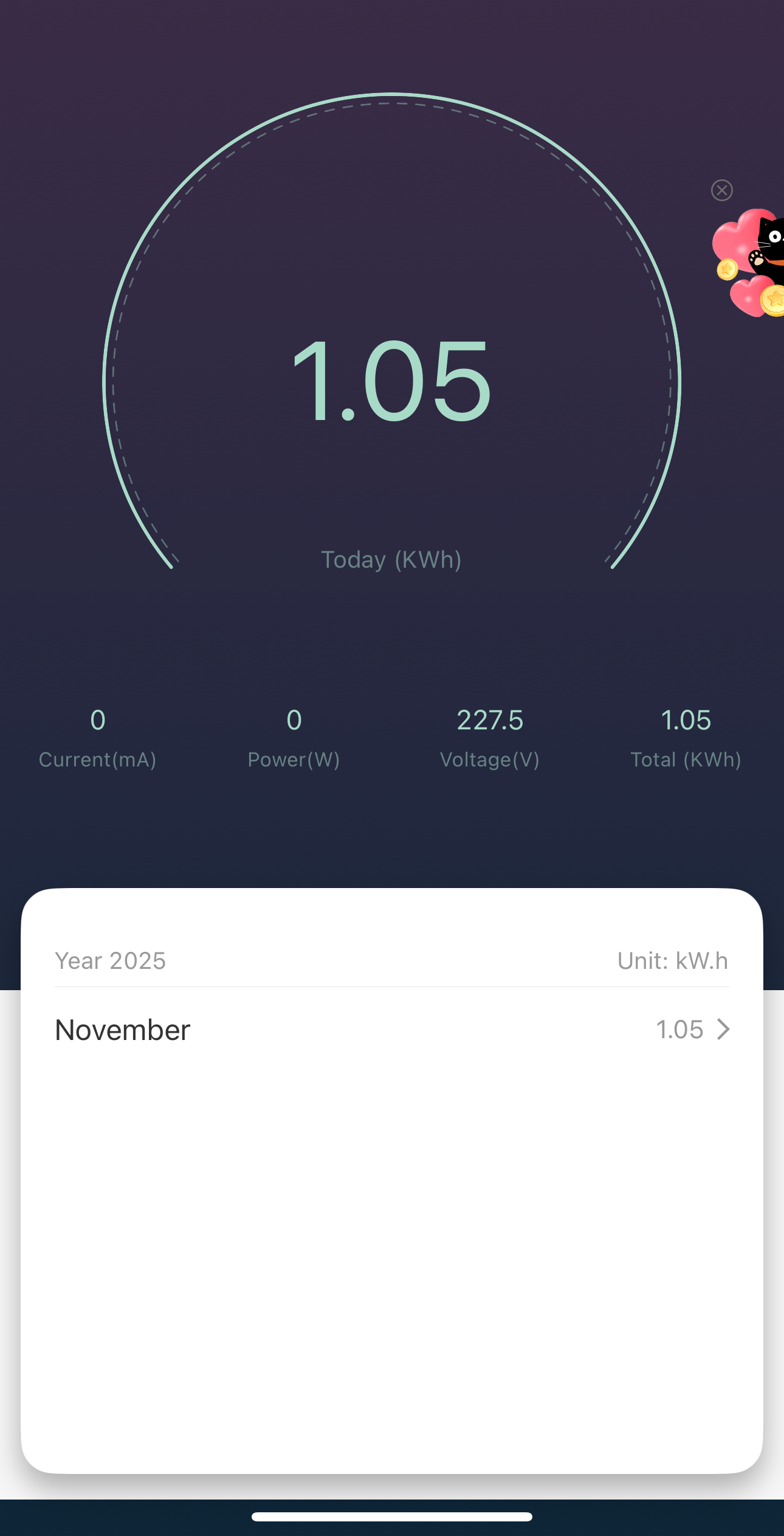 좋았던 점은 누적 사용량(kWh)이 자동으로 기록된다는 것이다.