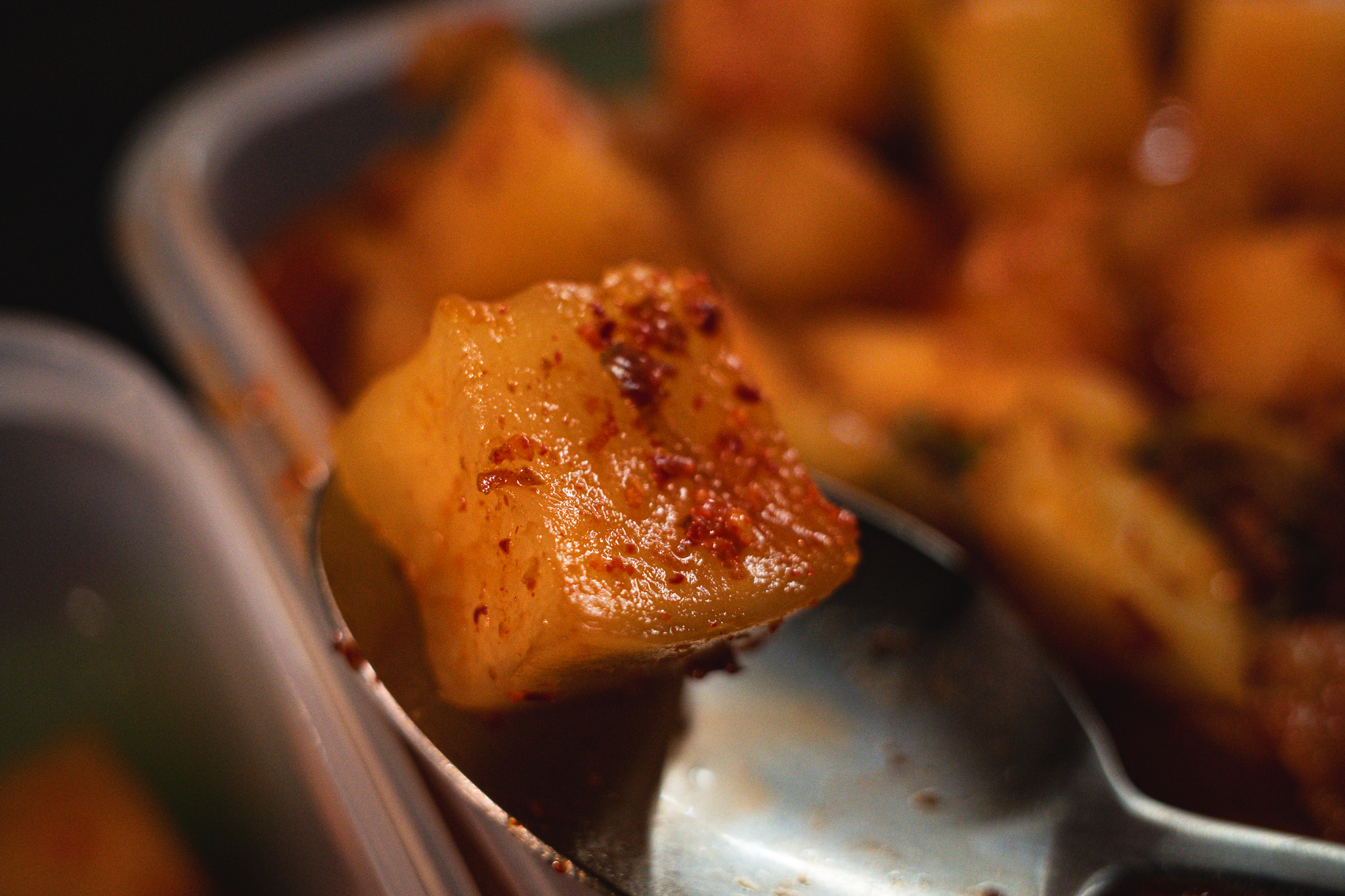먹자마자 가장 먼저 느껴진 건 아삭함이다. 무의 결이 잘 살아 있어서 씹을 때마다 단단하게 부서지는 식감이 있다. 과하게 물렁하지도 않고, 또 너무 단단해서 부담스럽지도 않은 적당한 균형을 가지고 있다. 평소에 먹던 중국산 깍두기와 비교하면 식감의 선명함이 조금 더 뚜렷하다는 느낌이 있었다.