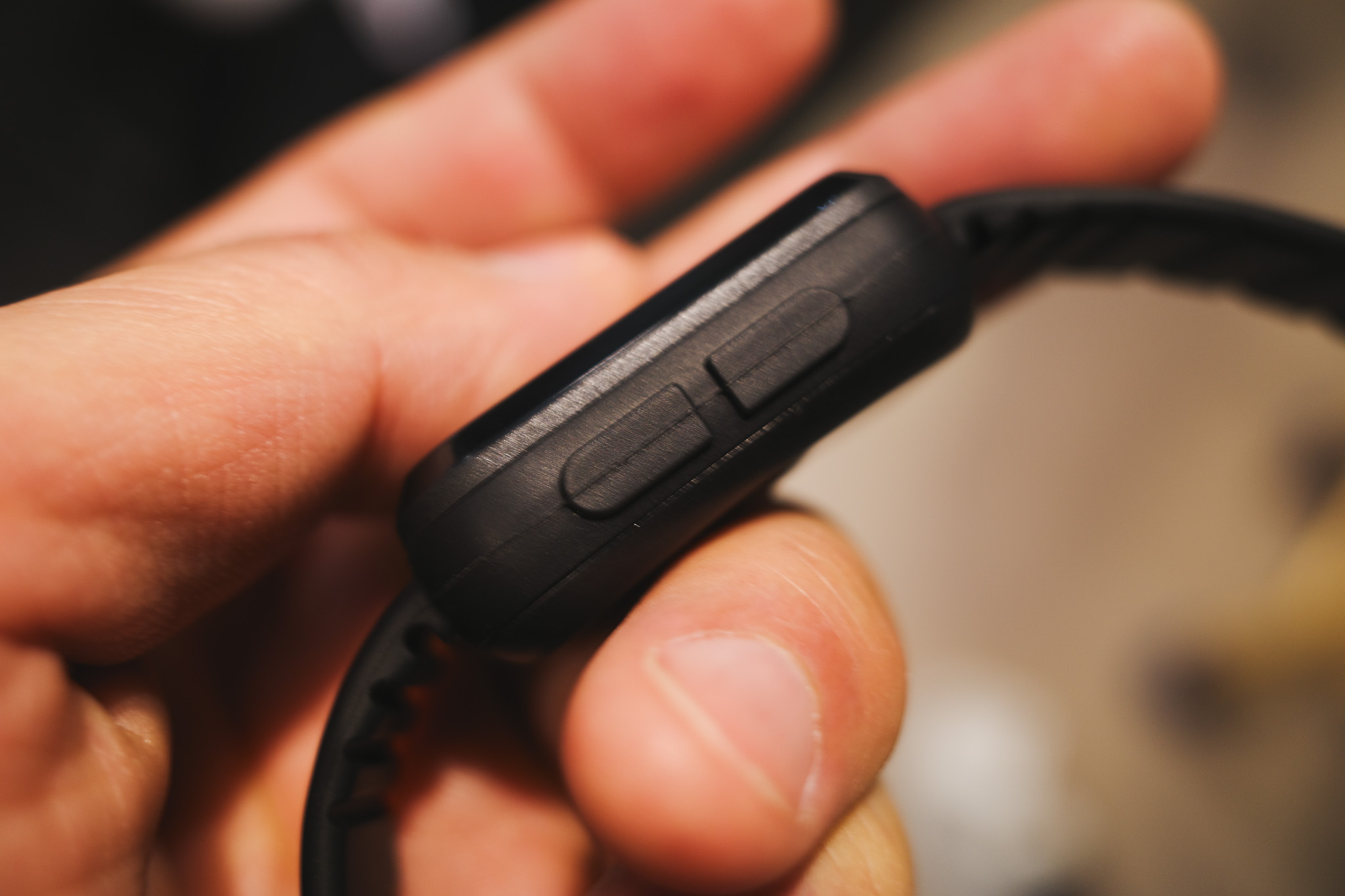 시계 기능이 포함된 제품이라 화면이 작은 디지털 워치 느낌이고 스트랩은 실리콘 재질이라 손목에 닿았을 때 부담이 없다.