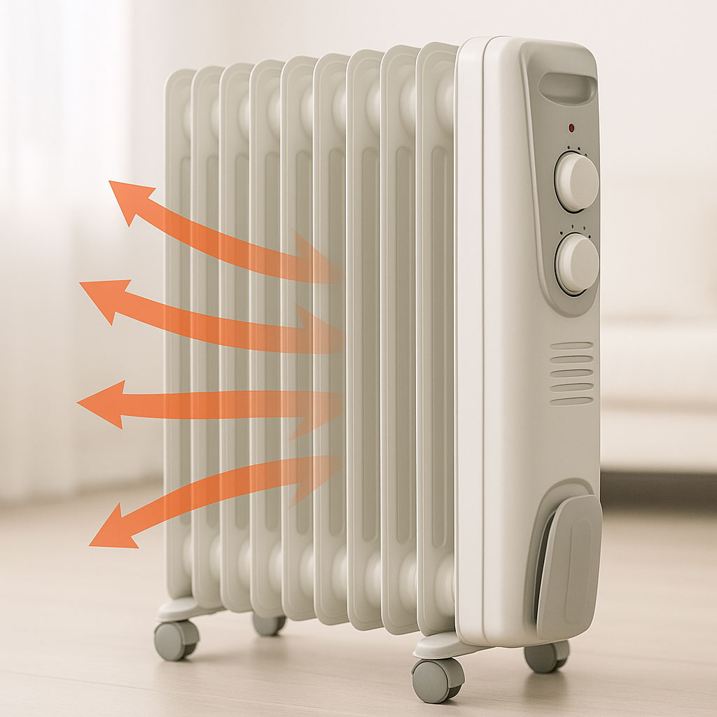라디에이터 히터는 내부 오일이나 금속핀을 천천히 가열해 그 열을 축열·대류 방식으로 퍼뜨리는 타입이다.