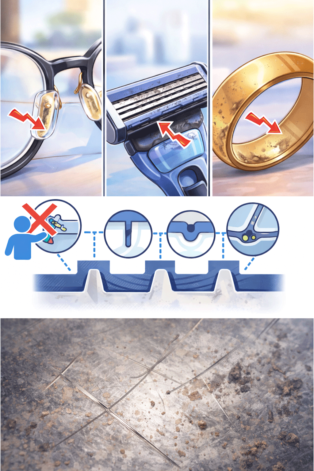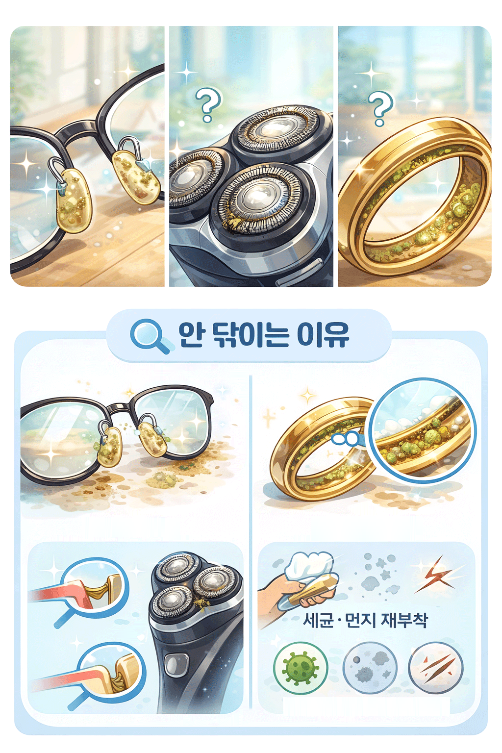 면도기 날이나 반지처럼 표면이 예민한 물건일수록 강한 마찰은 깨끗함보다 손상을 먼저 만든다.