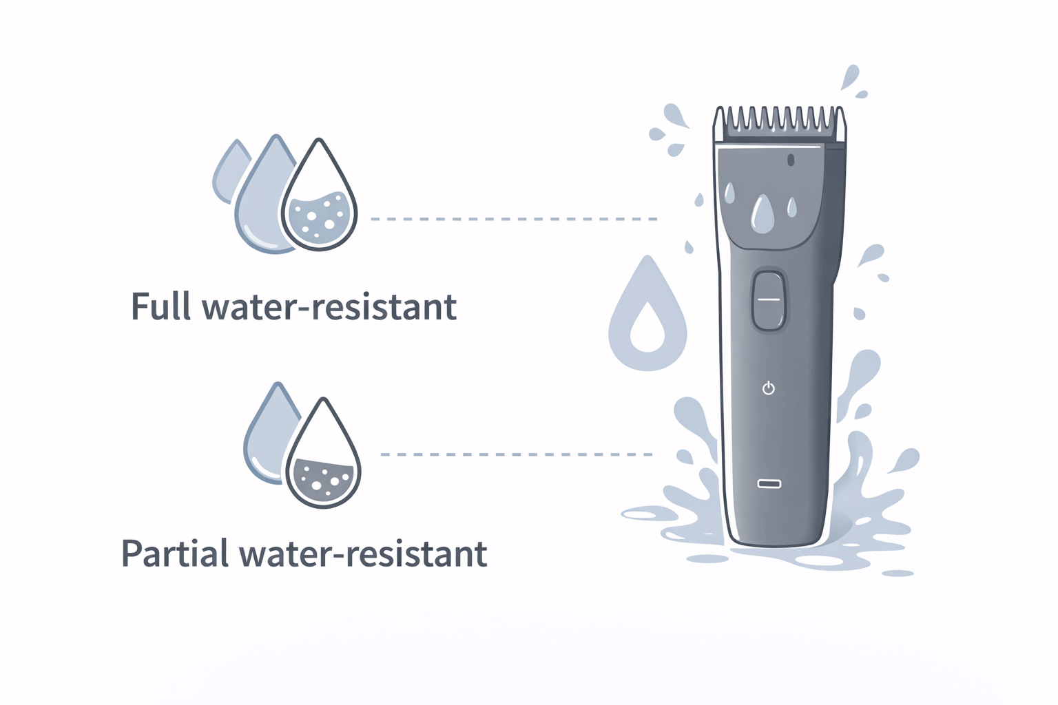 부분 방수는 칼날 세척만 가능하고, 전체 방수는 본체까지 물로 헹굴 수 있다.