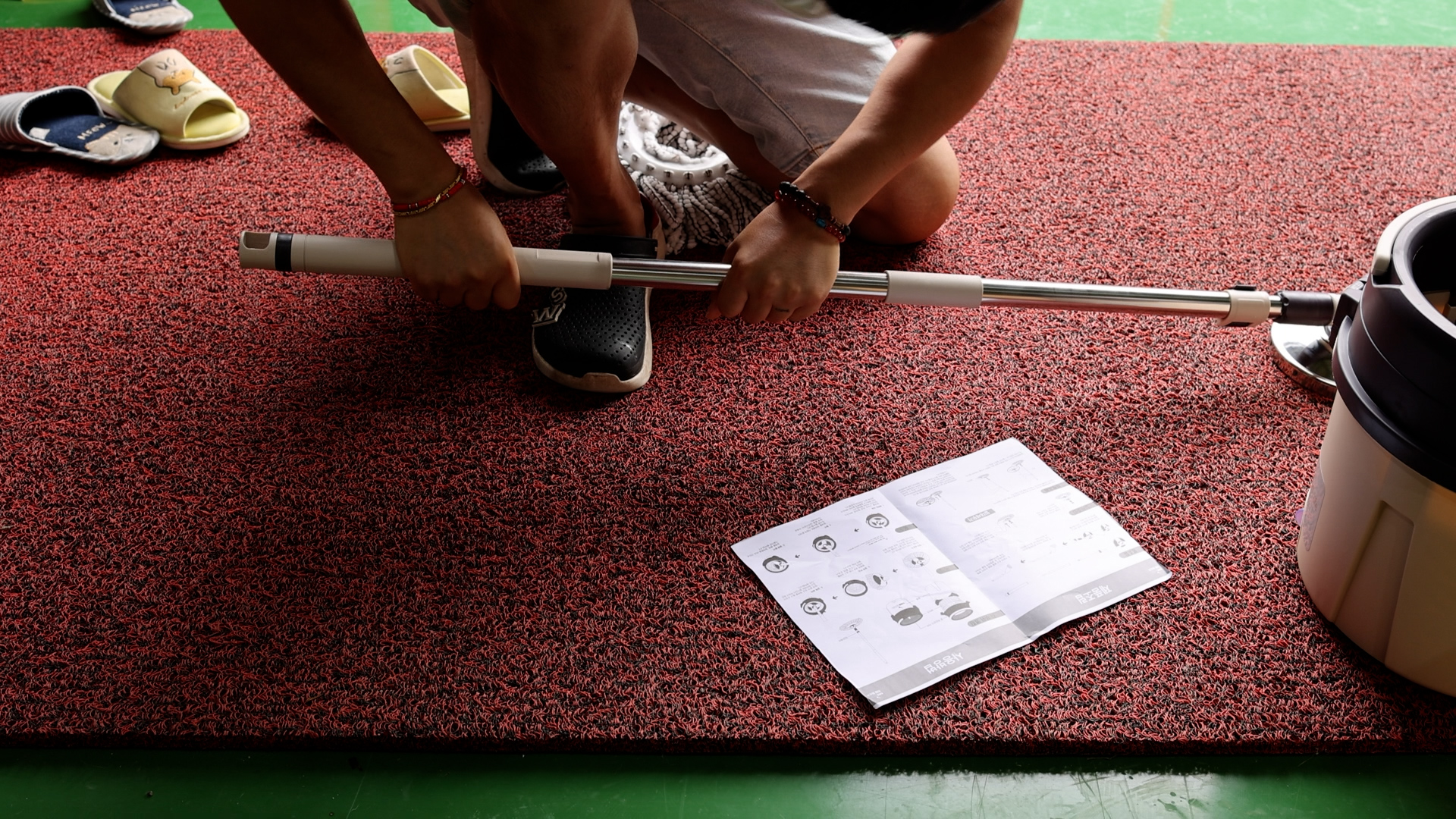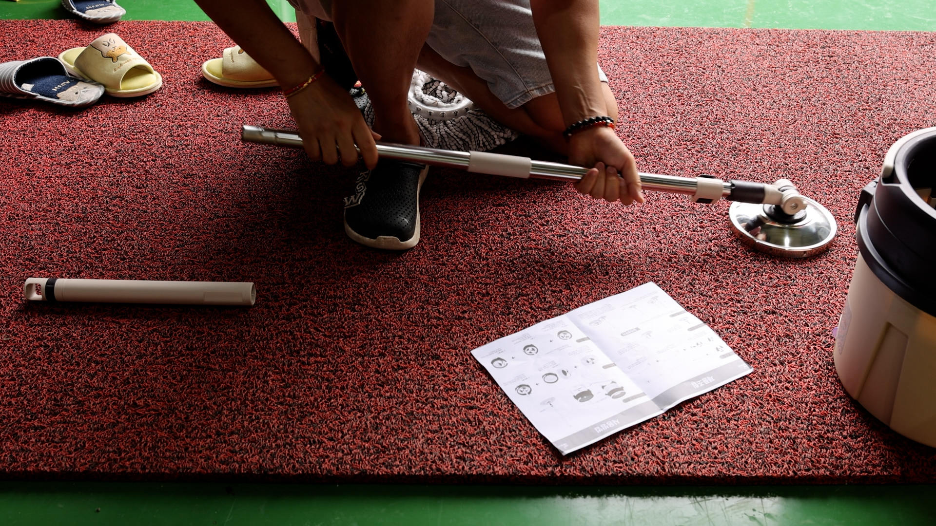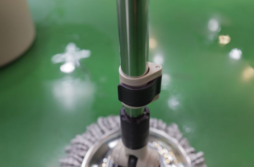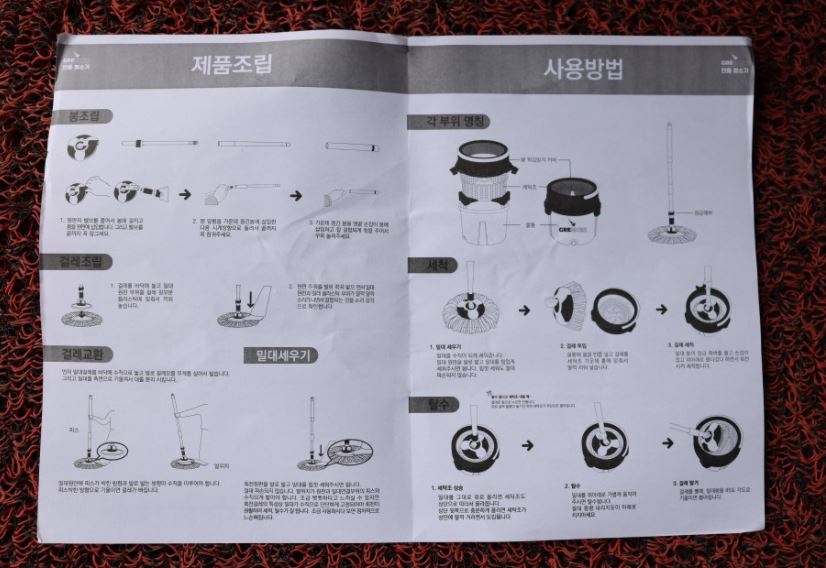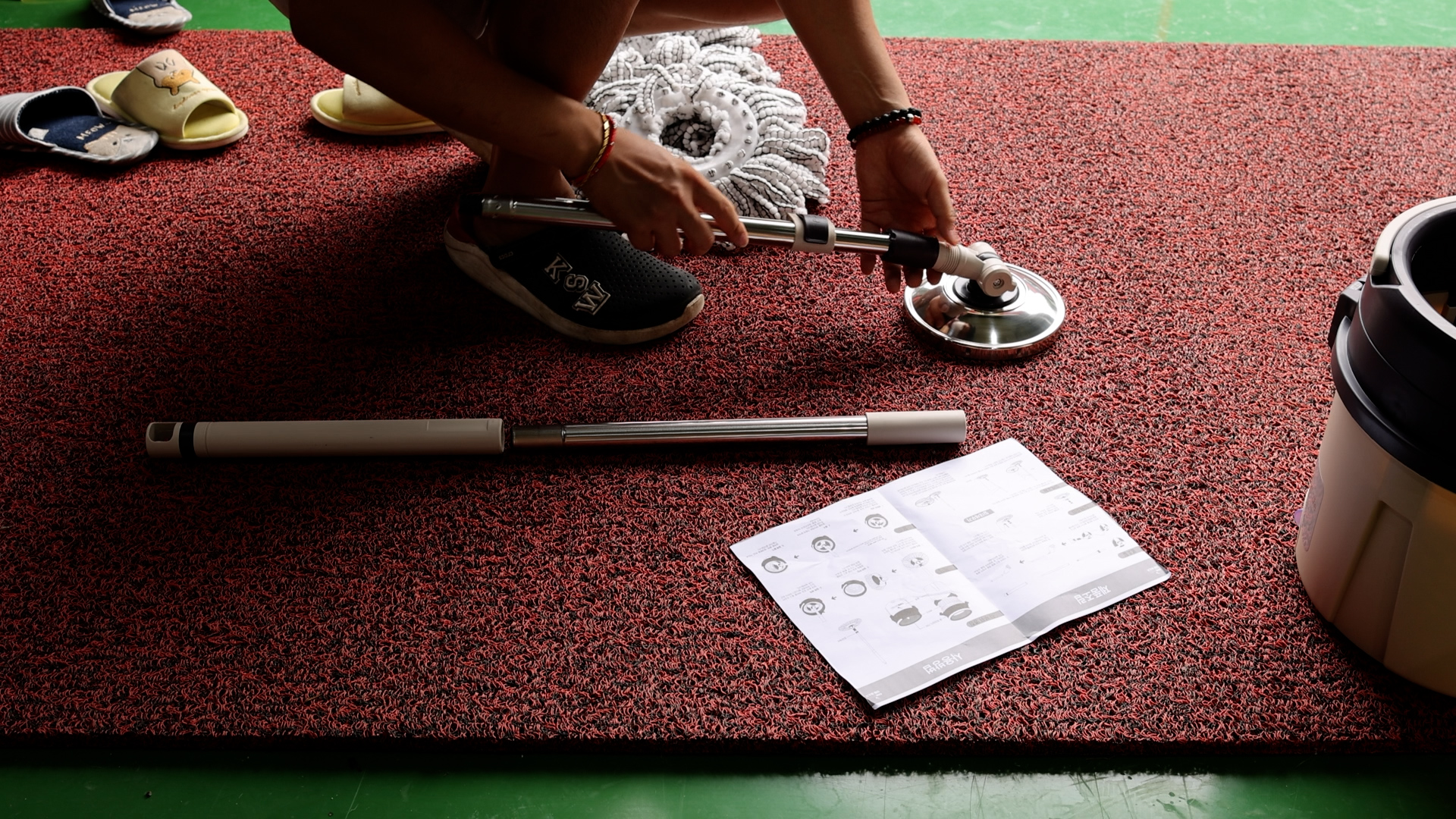 원판과 3단으로 구성된 마포걸레 봉을 차례로 연결해주면 된다.