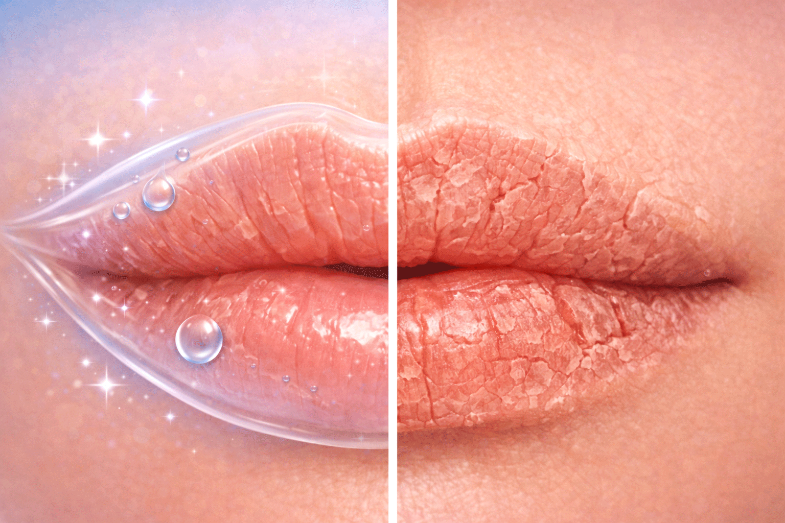 입술은 수분을 붙잡아 두는 능력이 거의 없기 때문에,