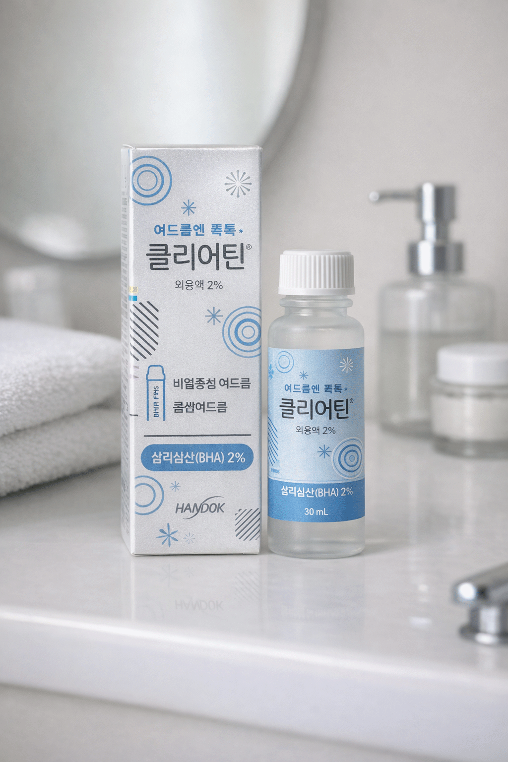 또한 살리실산은 지용성 성분으로, 피부 표면에만 머무르기보다는 각질층과 모공 입구를 중심으로 작용하도록 설계되는 경우가 많습니다. 이 때문에 살리실산 외용제는 보통 넓은 범위에 두껍게 바르기보다는, 필요한 부위에 국소적으로 사용하는 형태로 안내됩니다. 클리어틴이 액상 외용제로 제공되는 것도 이러한 사용 맥락과 무관하지 않습니다.