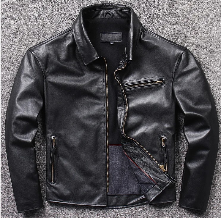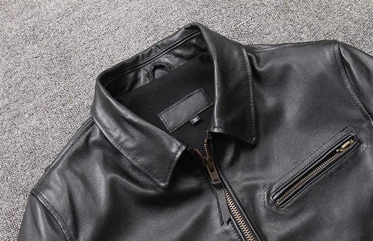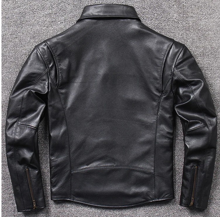 New Arrival Heavyweight Top Layer Cowhide Genuine Leather Jaet Men's Motorcycle Sle Stand Collar Youth Spring Autumn Leat... - A
