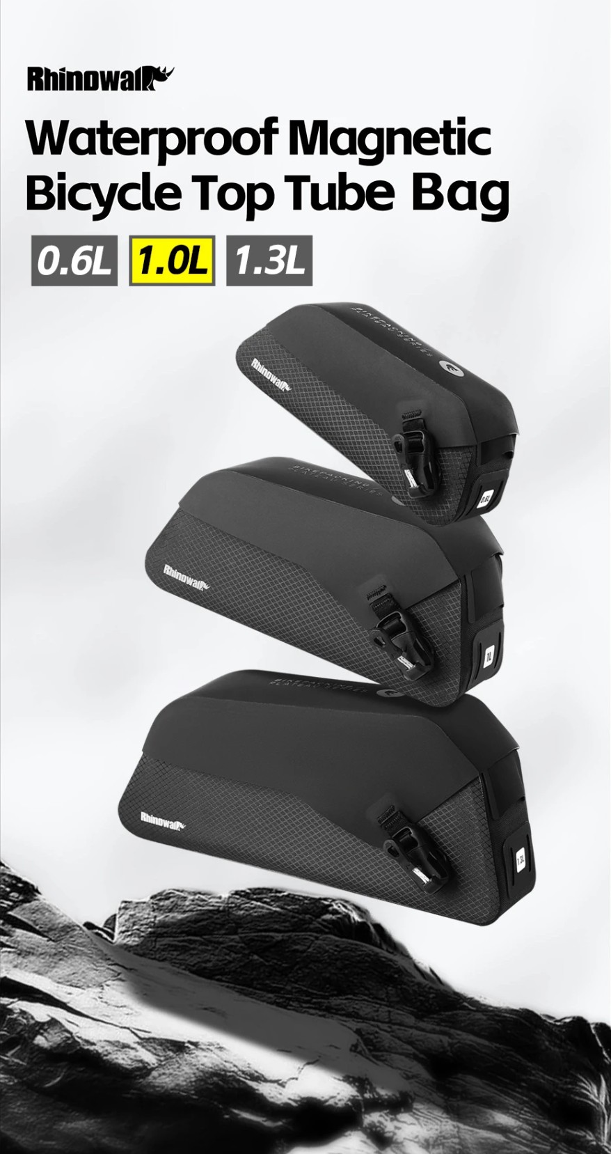 Rhinowalk Bicycle Top Tube Bag Waterproof Bike Front Frame Storage Bag Screw & Strap fixed Cycling Travel For MTB Road Gravel -