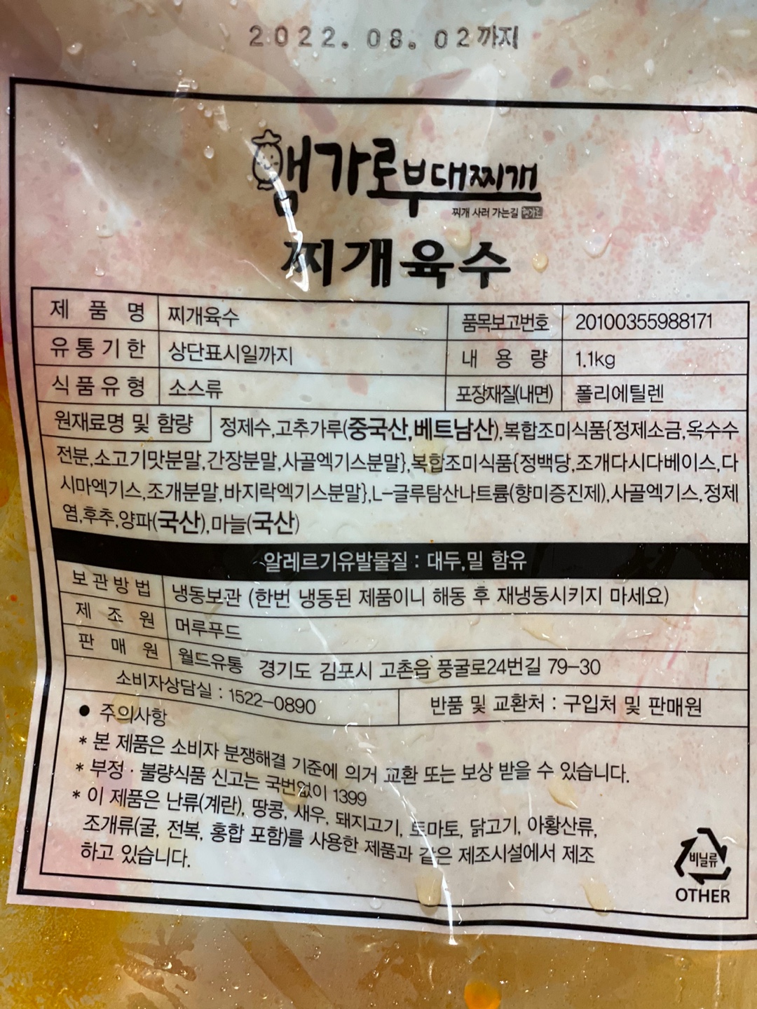 육수 따로, 햄 따로, 야채 따로 각 가 포장이 되어 있다.
