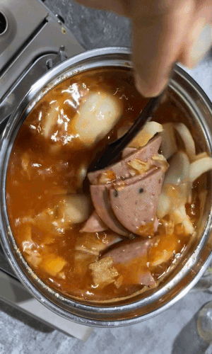 먼저 육수와 햄을 넣고 10분간 끓여준다..