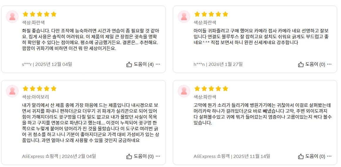 그래서 금속이 부담스러운 사람들이 이쪽으로 이동하는 경우가 많다. 자극은 줄이고 싶지만, 귀지는 직접 제거하고 싶기 때문이다.