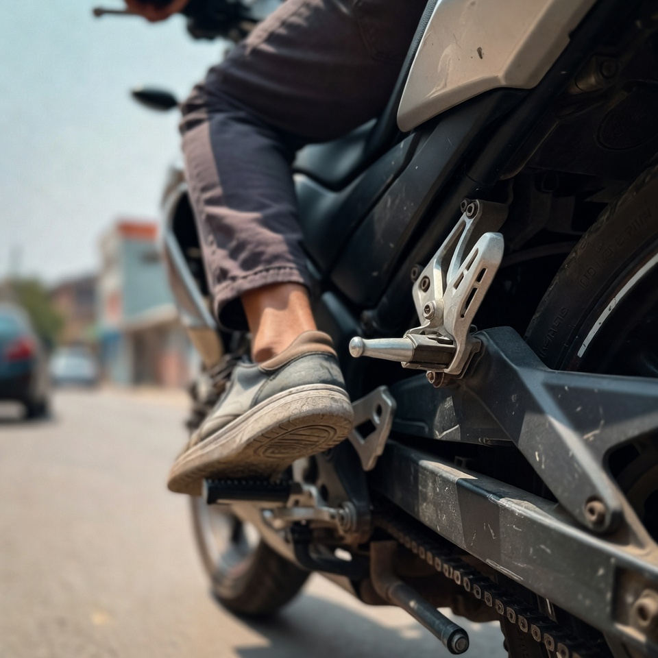 수동 기어는 왼발로 조작한다. 발을 레버 아래에 넣고 위로 올린다. 다시 내린다. 이 동작을 주행 내내 반복한다. 문제는 항상 같은 지점이 닿는다는 거다. 접촉 면적은 작고, 레버는 금속이다. 작은 면적에 힘이 몰리면 압력이 높아진다. 거기에 마찰까지 더해진다. 몇 번은 괜찮아 보인다. 그런데 이게 수십 번, 수백 번 반복되면 이야기가 달라진다.