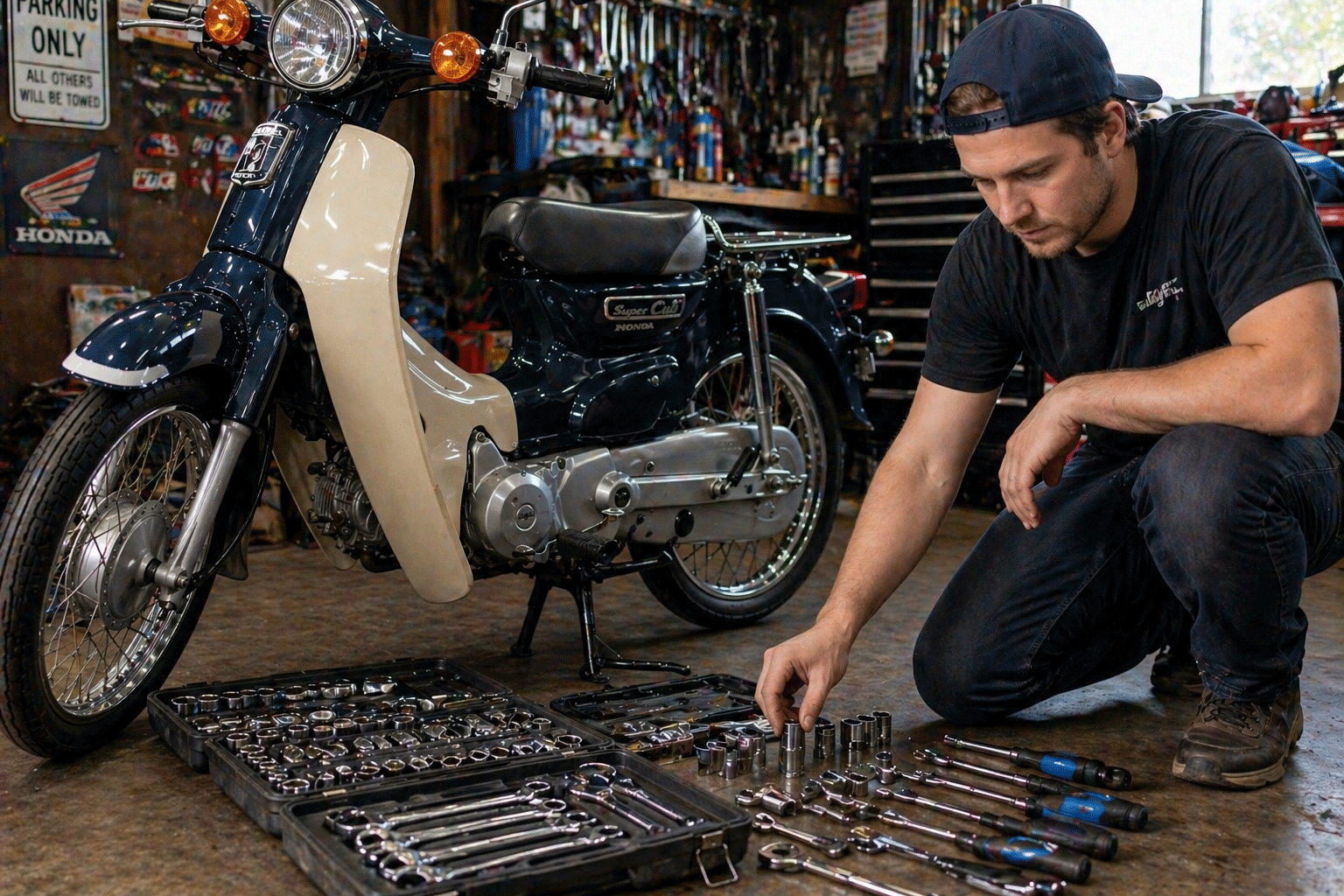 슈퍼커브 정비 자체가 복잡한 게 아닙니다. 문제는 일반적인 공구 추천이 이 바이크에 실제로 필요한 규격을 반영하지 않는다는 점입니다.
