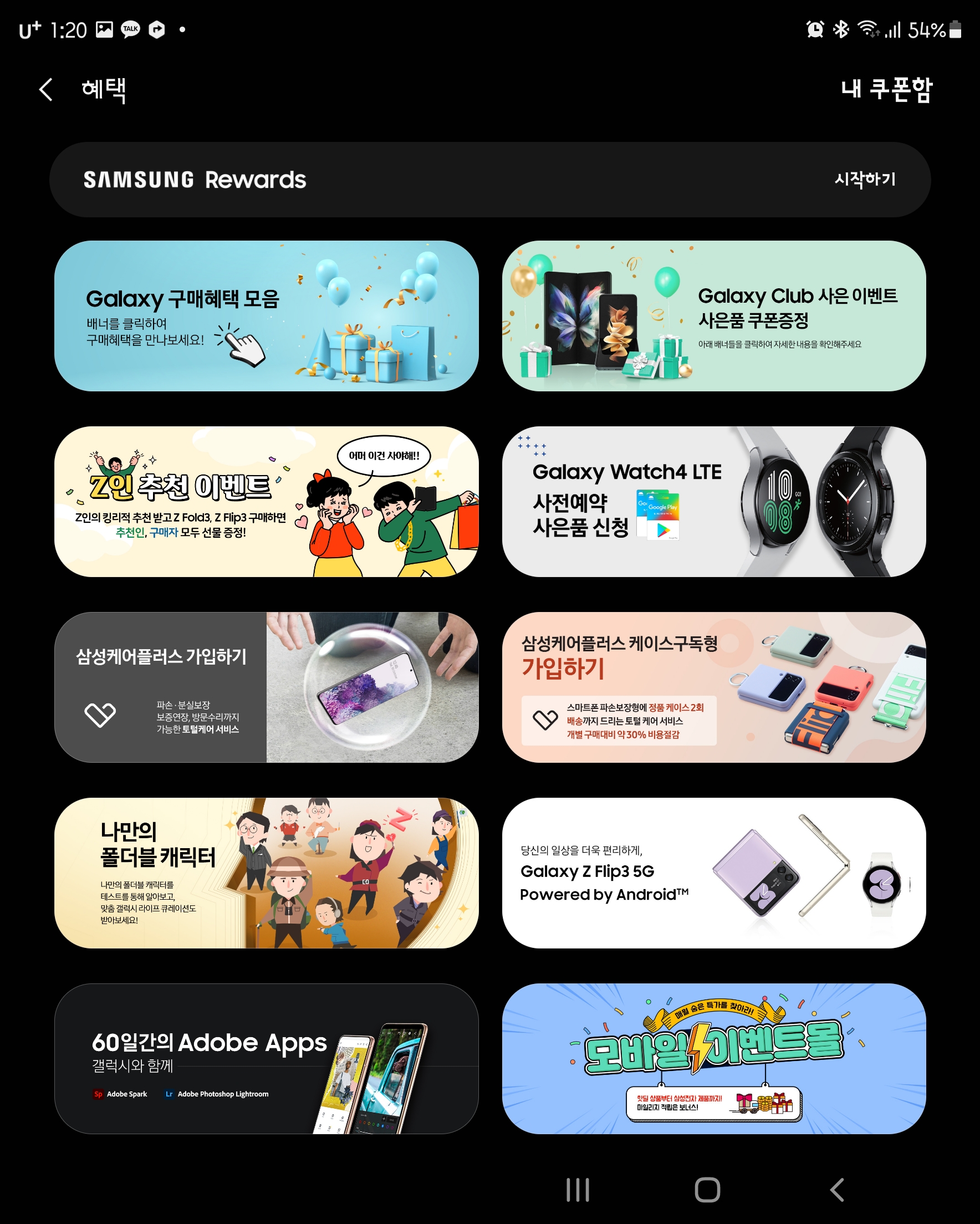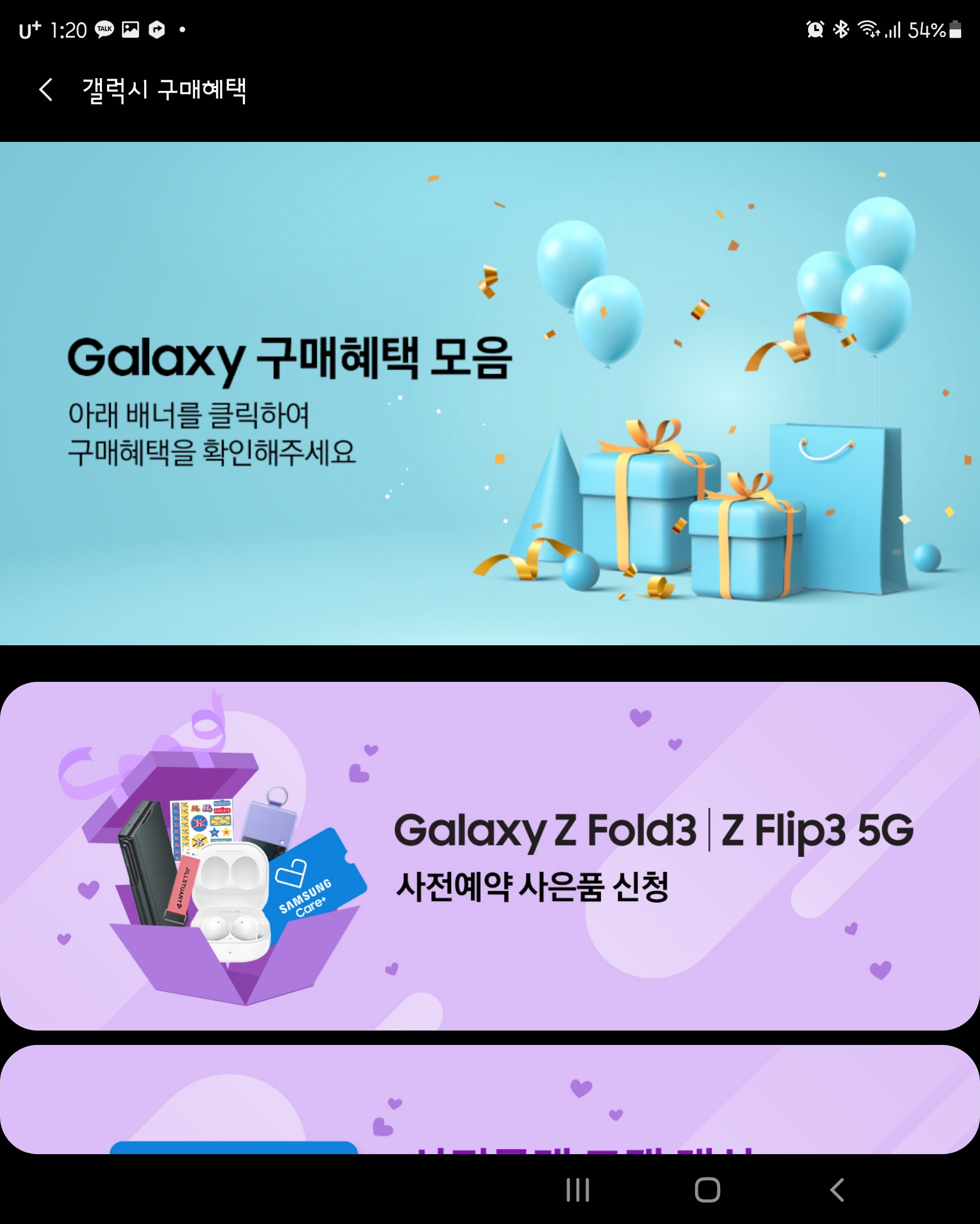 왼쪽 상단에 갤럭시 구매 혜택 모음으로 들어가면 된다.