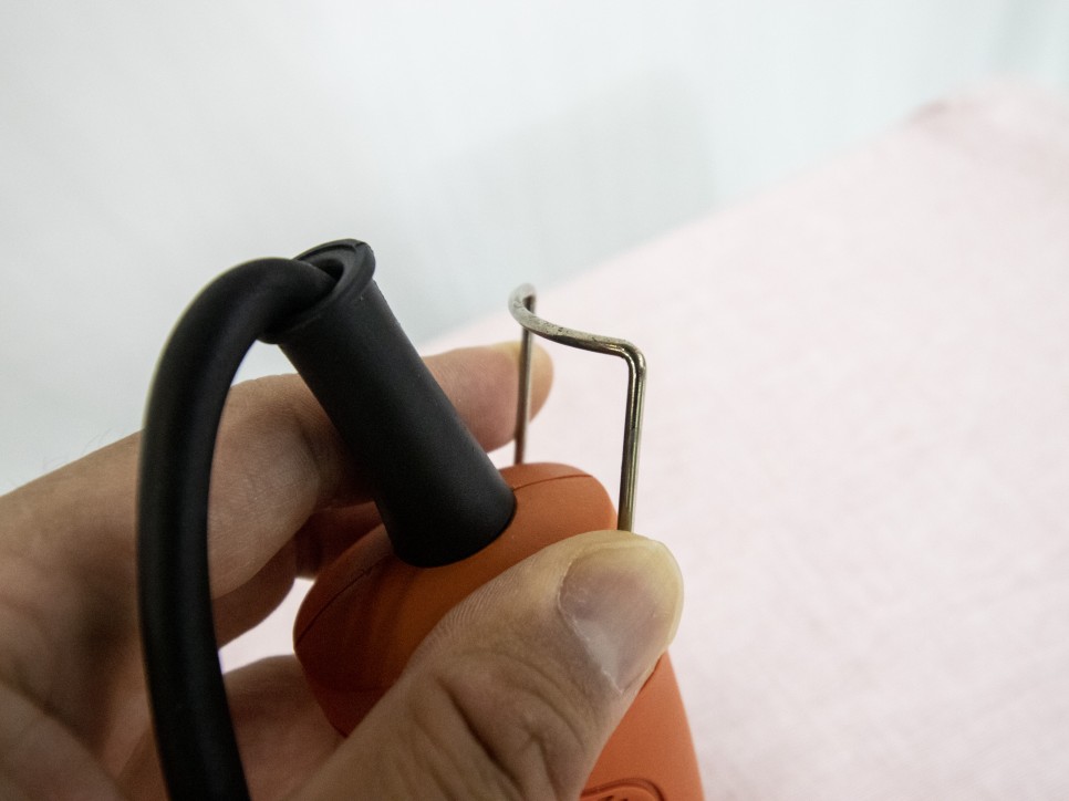 블랙데커의 경우 앞쪽에 버튼이 위치해 위와 같은 방법으로 거치시 상당한 주의가 필요하다