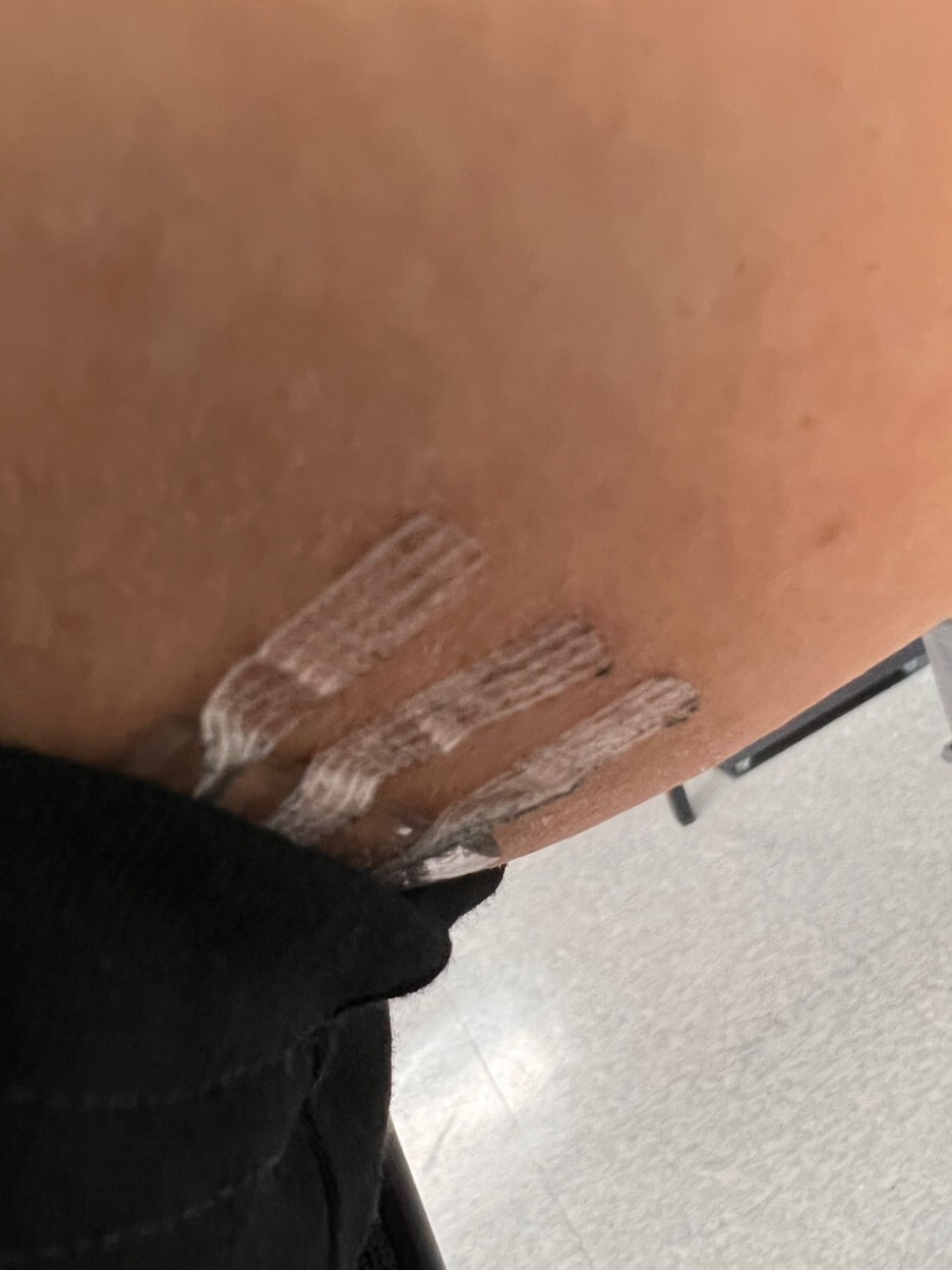엄밀히 따지자면 어깨 쪽에 발생한 지방종 제거 수술 부위에도 붙여주는 게 맞지만