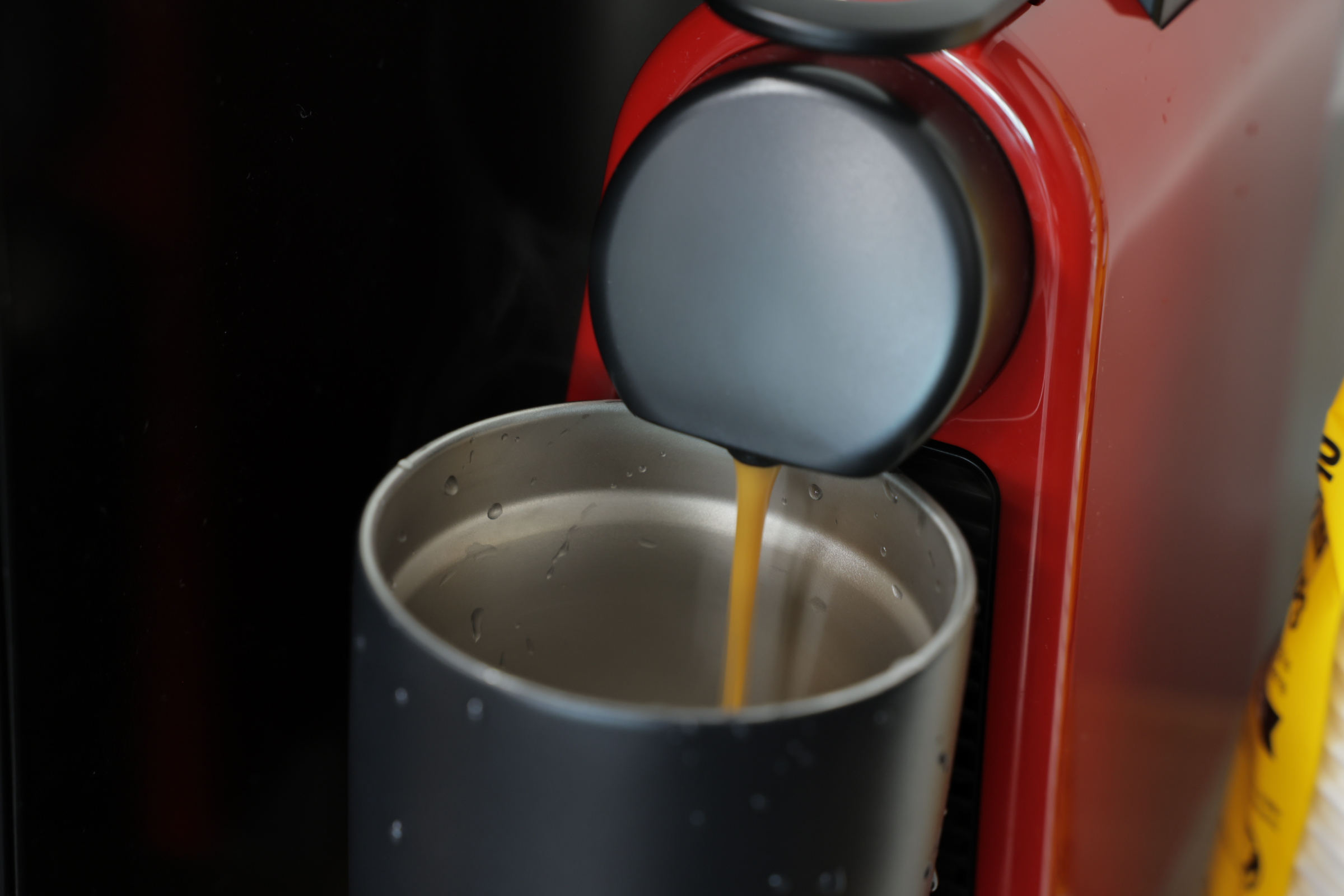 네스프로소 머신으로 커피 추출 중