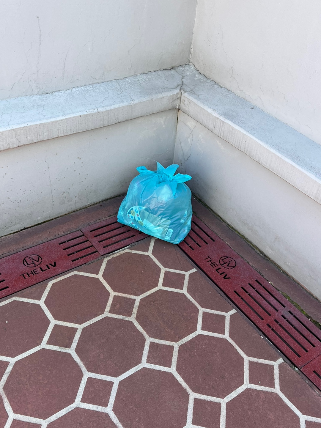 사무실 테라스에 덩그러니 있는 종량제 봉투 악취를 풍기는 내용물을 봉투에 넣으면 사무실에 쓰레기 냄새가 진동을 해서 밖에 빼 두었다.
