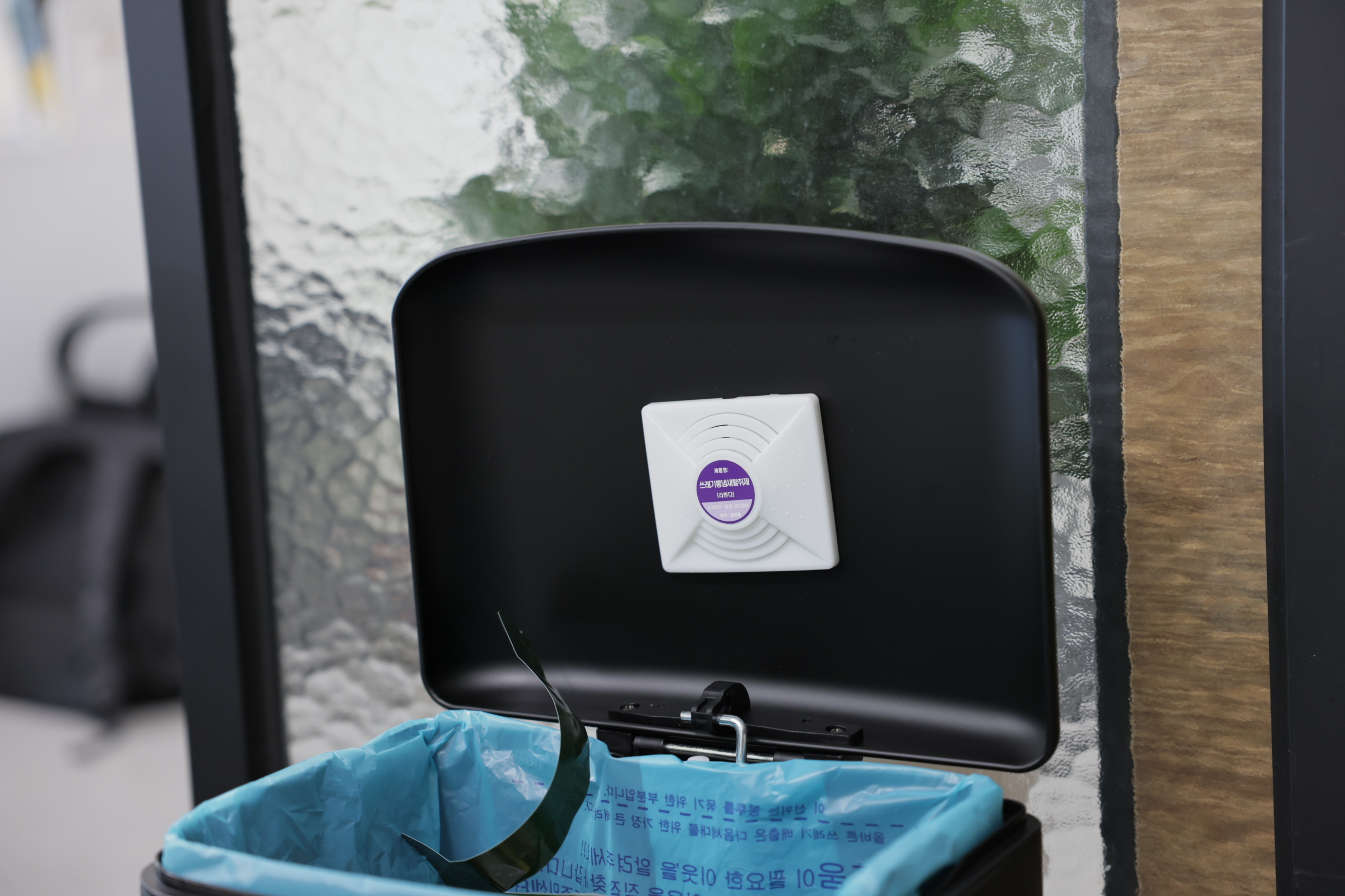 4. 쓰레기통 뚜껑에 냄새 탈취제를 붙인다.