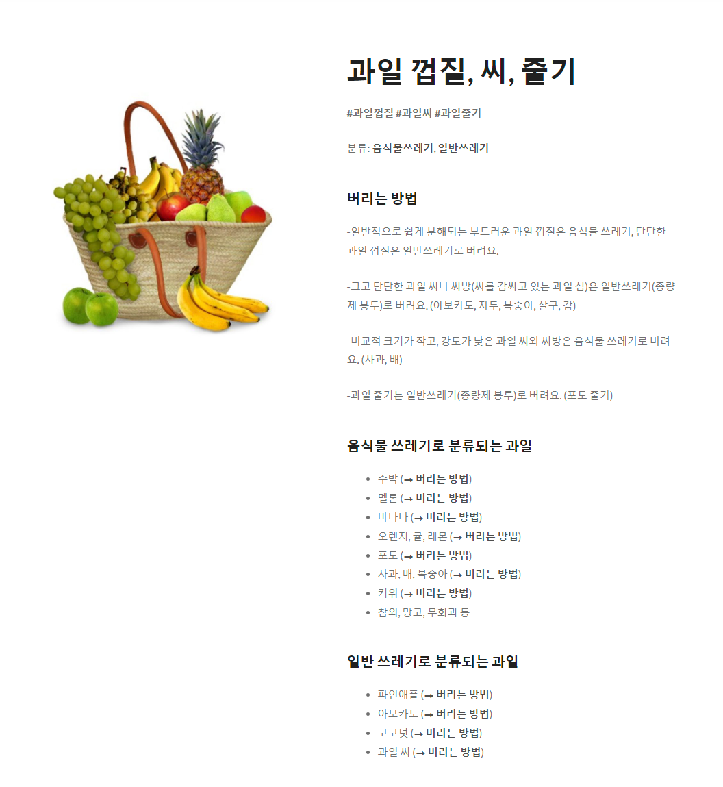 그리고 하단부에 기타 과일 버리는 방법의 카테고리가 있어서 한꺼번에 확인할 수 있는 부분이 참으로 좋았다.