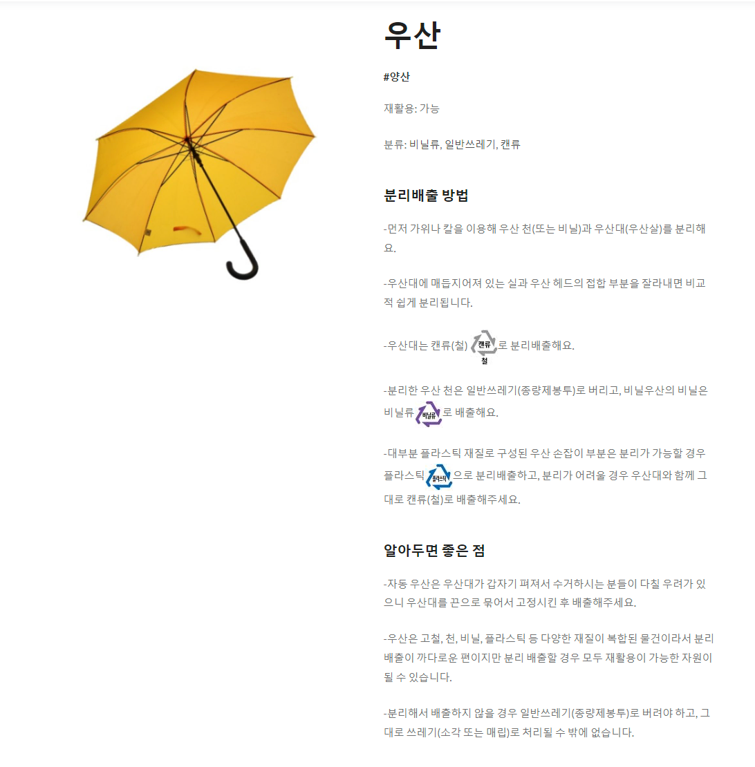 카테고리 별로 해당하는 쓰레기의 정보를 찾아서 이용하면 된다.