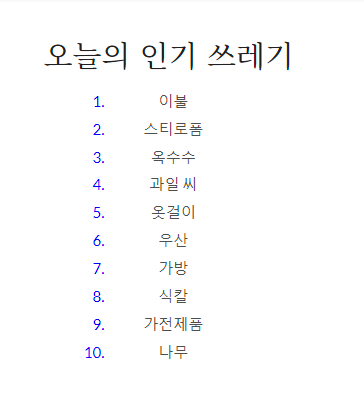 그리고 쓰레기 인기순위 쓰레기 차트를 제공하고 있다.