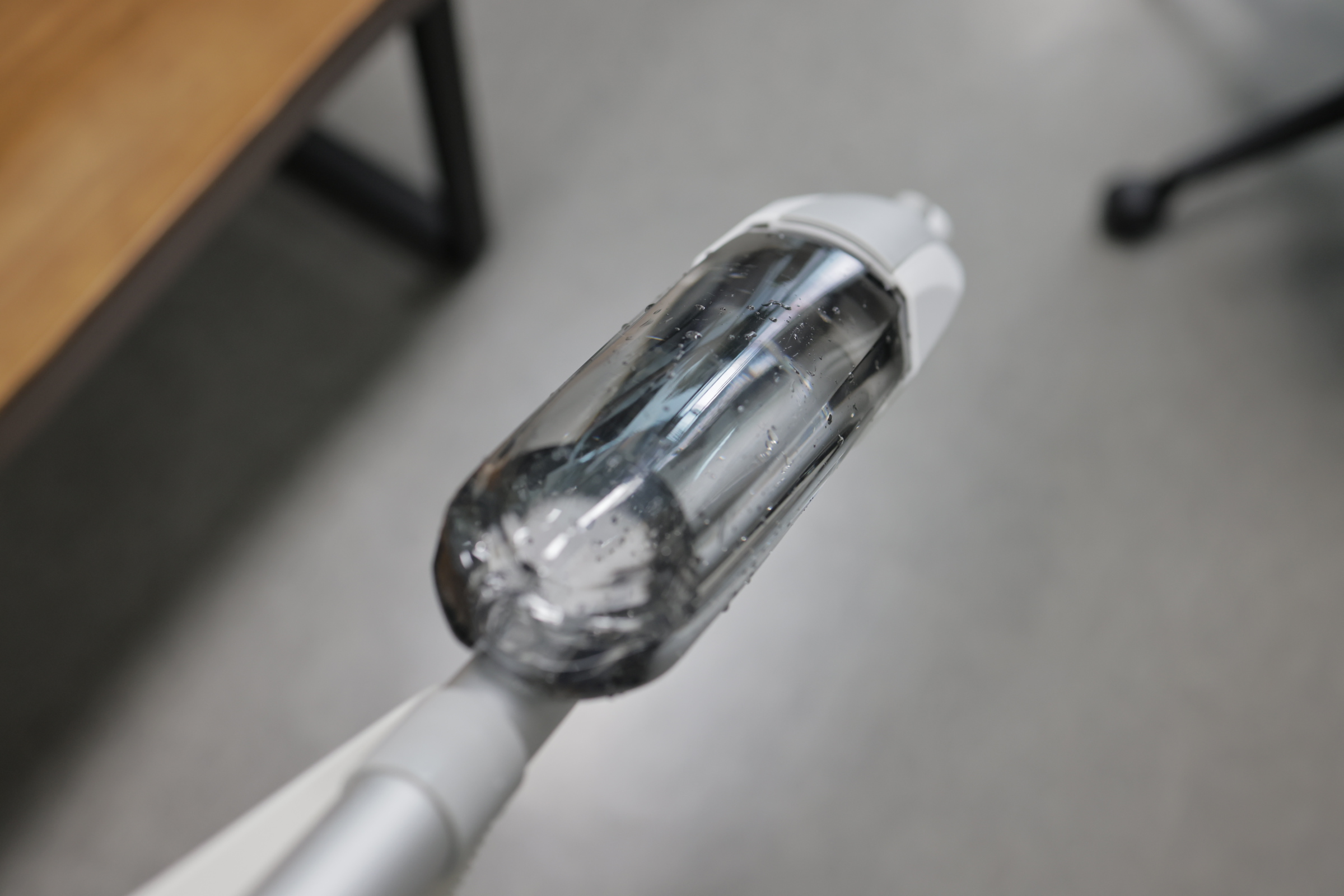 앞쪽으로 물을 뿌려주면 걸레가 밀고 지나가는 방식이다.