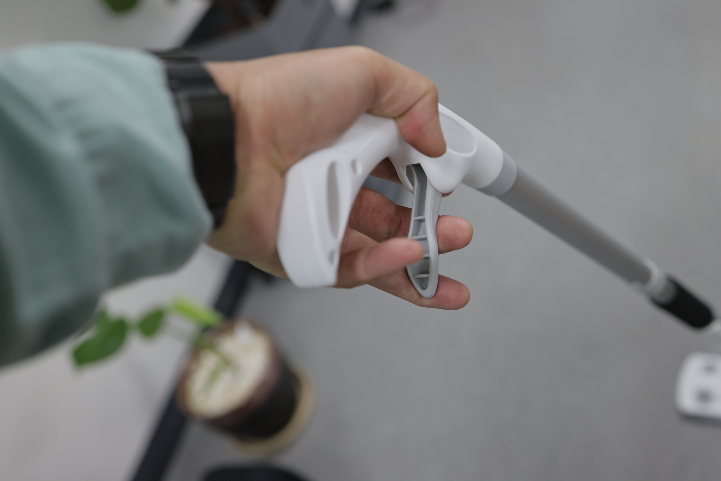 손잡이에 부착되어 있는 레버를 당기면 물이 분사된다.