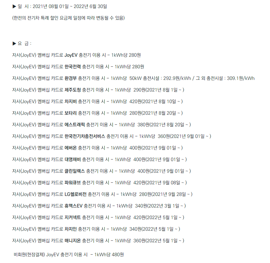 또 각 신용카드 회사마다 전기차 충전 시 할인이 되는 카드가 있는데 그것은 번외로 하고
