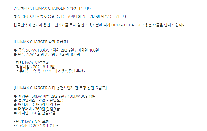 22년 9월 1일 0시부터 충전 요금이 인상된다는..