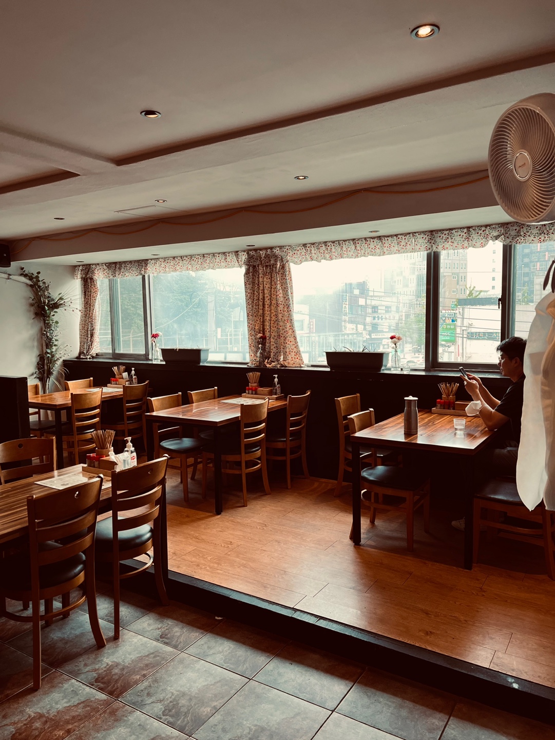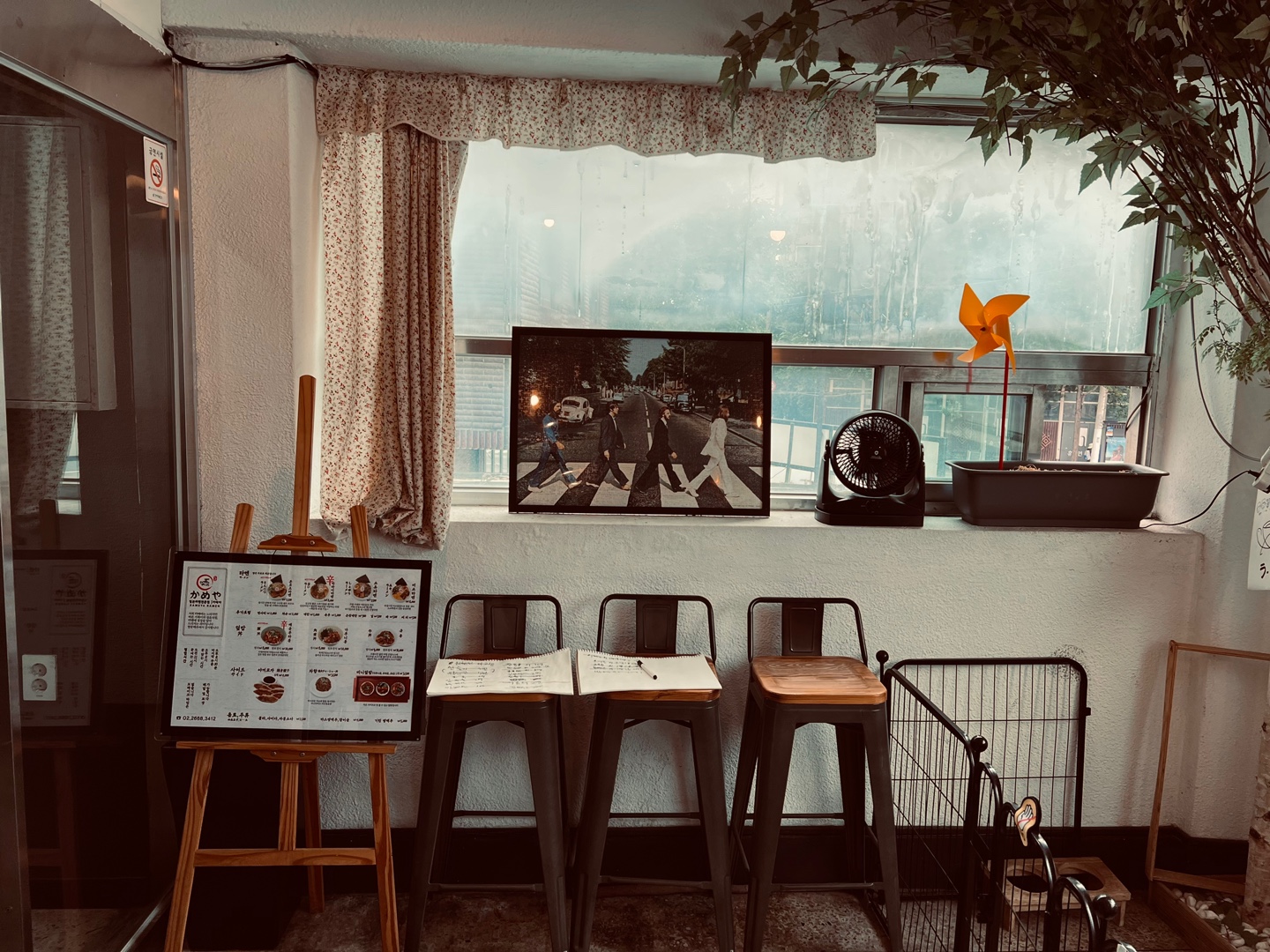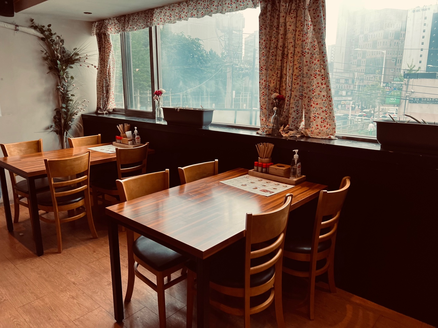 우리는 창가 쪽 테이블로 자리를 잡았다.
