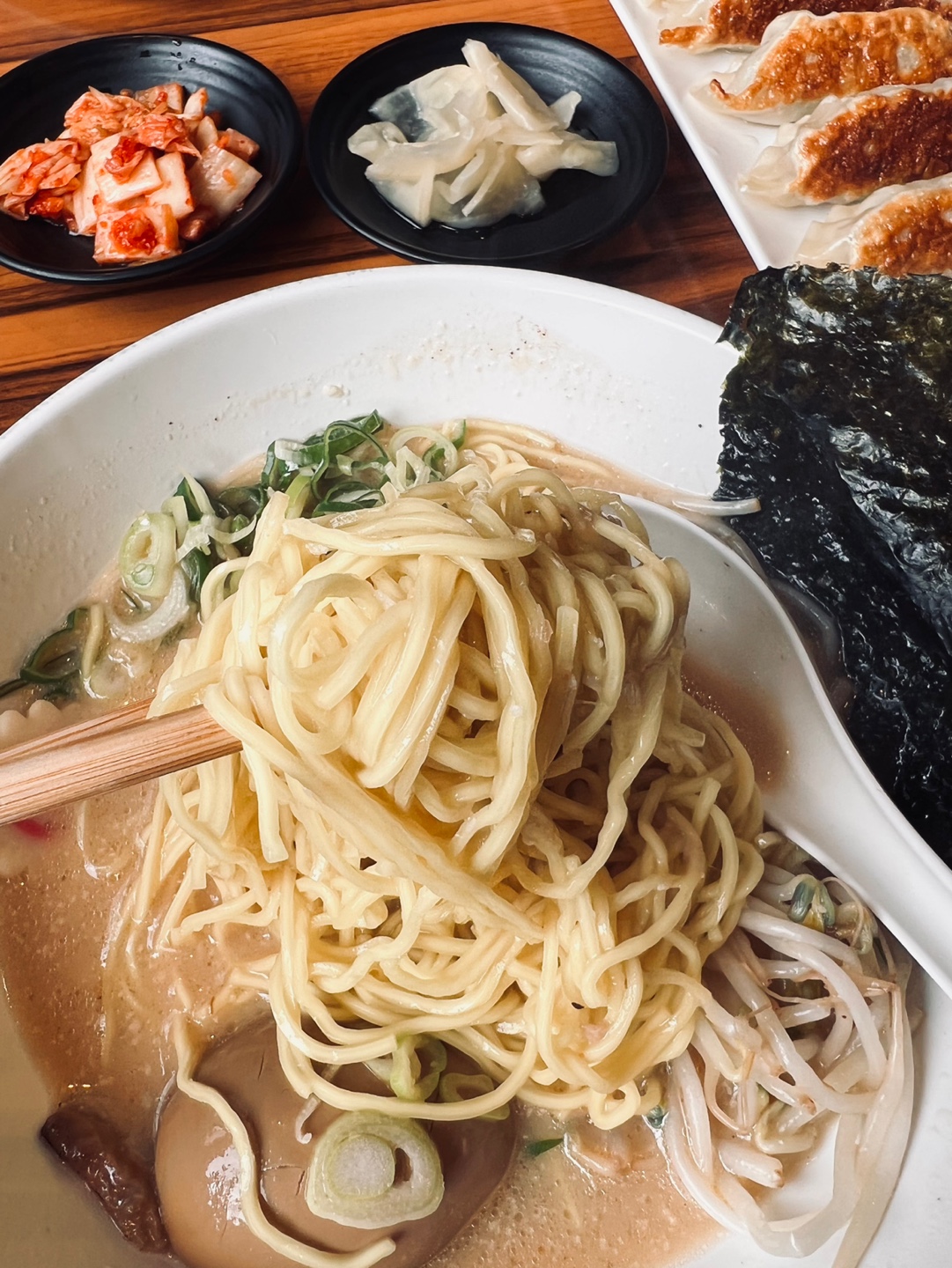 난 소유라멘 먹으려 했는데 직원이 돈코츠 라멘이 시그니처 라멘이라고 먼저 맛보길 권했다.