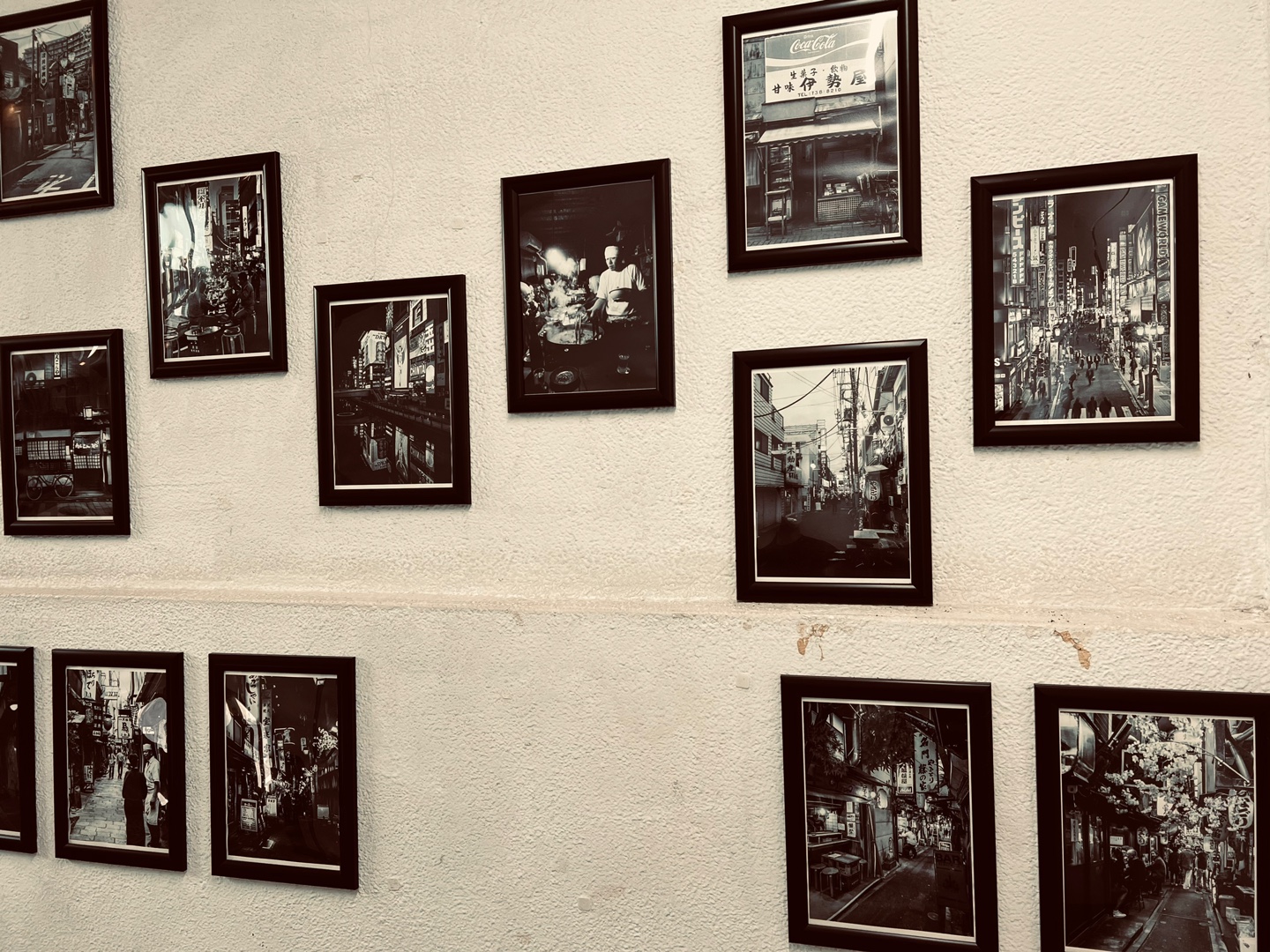 계단 벽면으로 보이는 흑백사진이 분위기를 더 아날로그틱하게 만들어줌