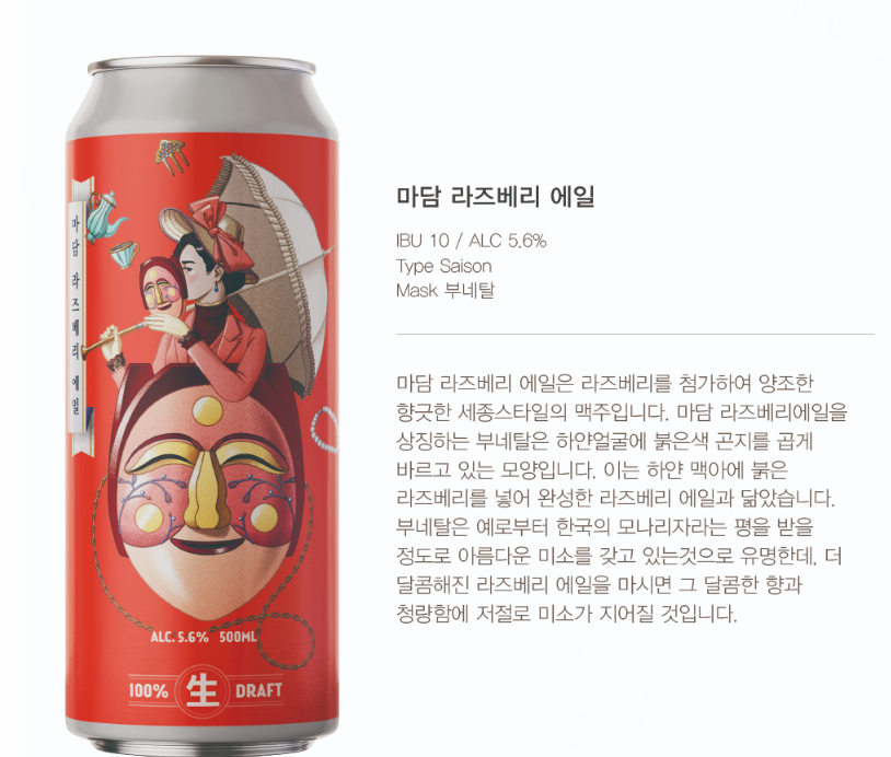 설명: 라즈베리를 첨가하여 양조한 향긋한 세종스타일의 맥주.