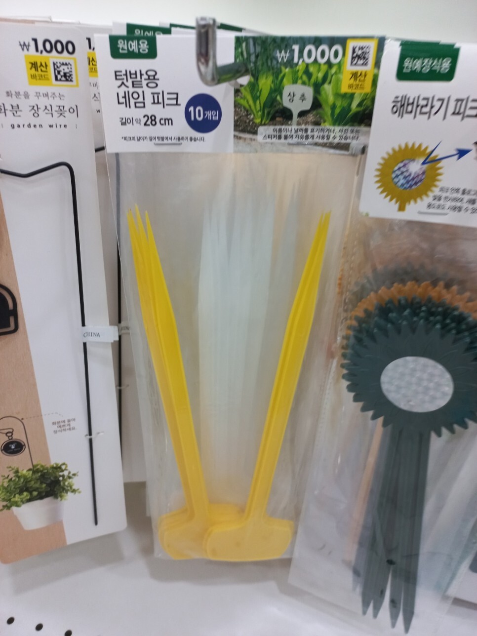 이름표뿐 아니라 화분에 꽂을 수 있는 여러 종류의 가든 피크(화분 장식 꽂이)가 준비되어 있었다.