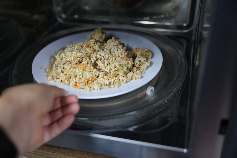 후후 약 2분 정도 흐르자 전자레인지 환풍구에서 볶음밥의 냄새가 피어 오름