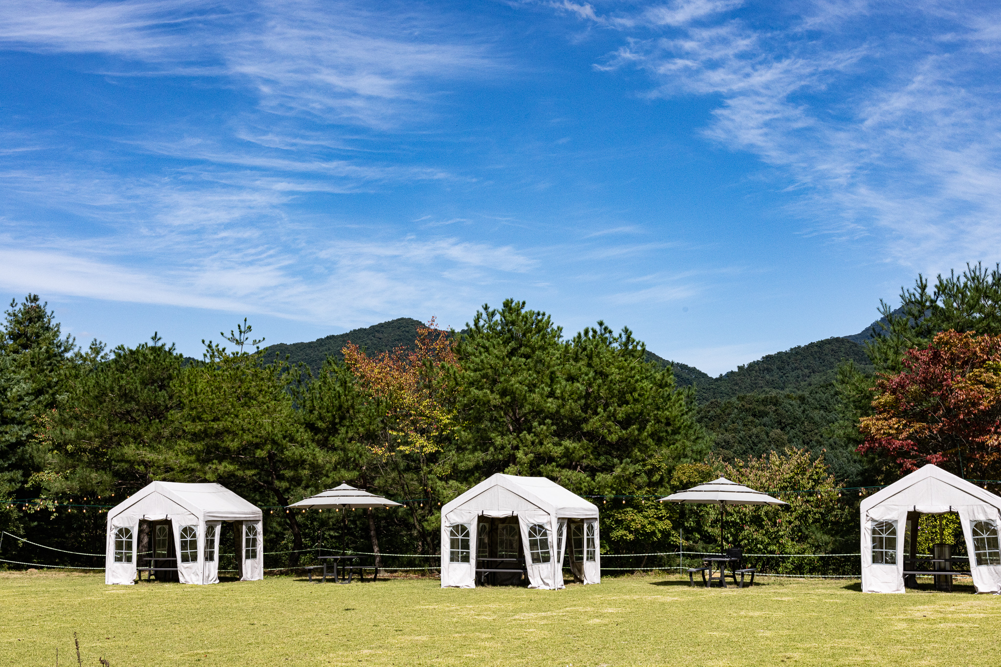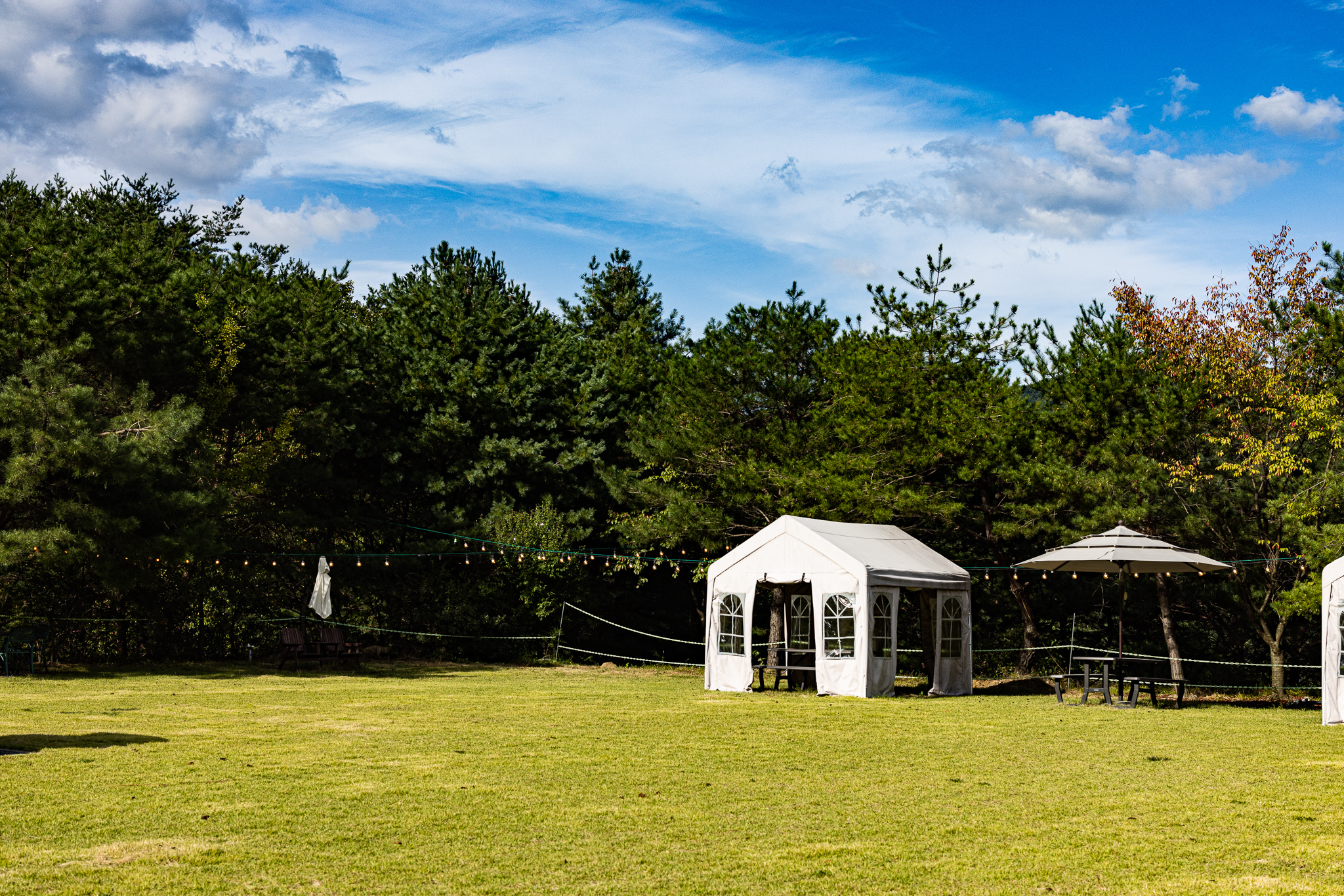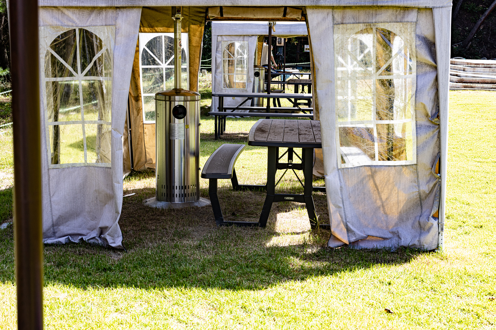 야외에 준비되어 있는 캐노피