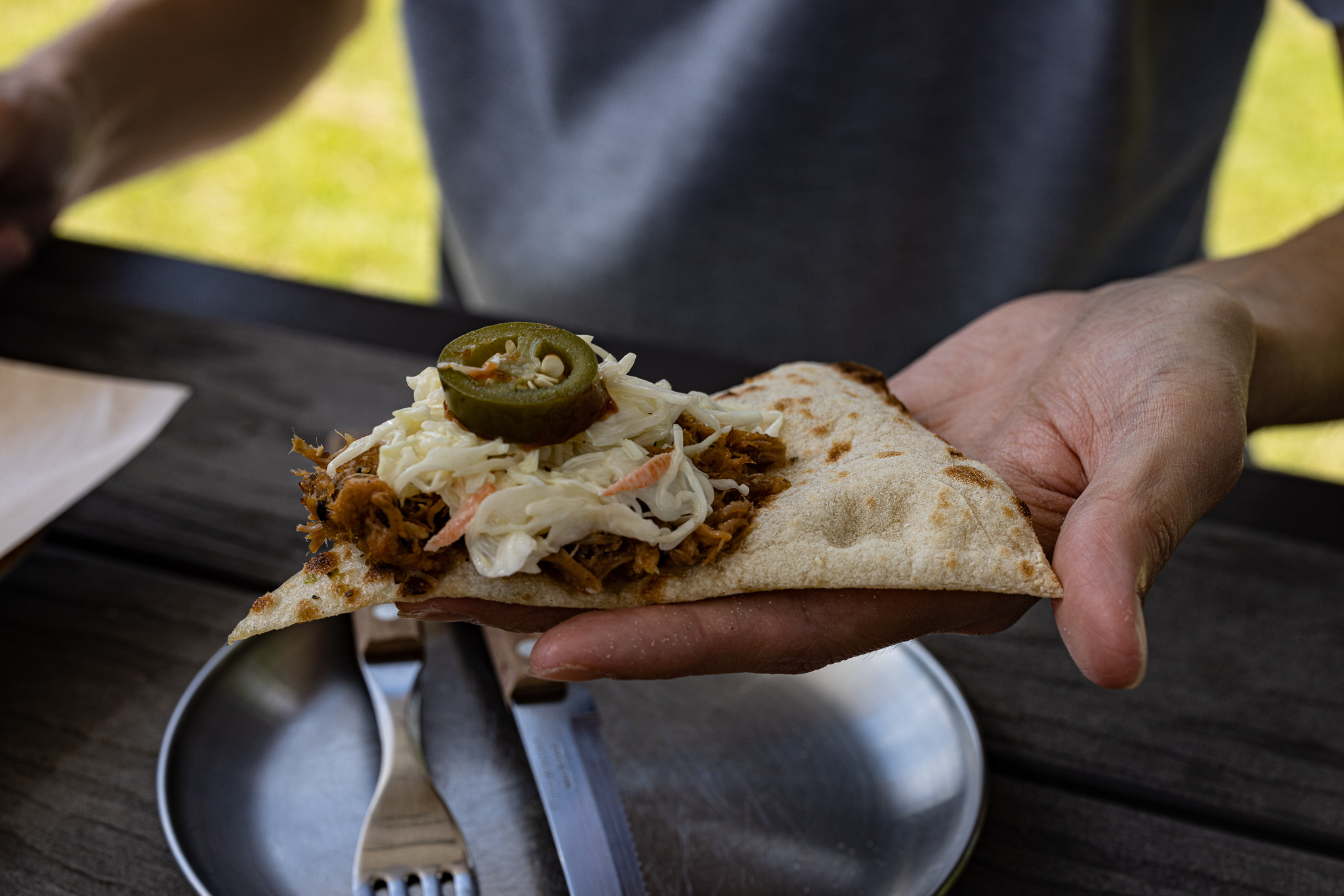 조각난 포카치아에 폴드포크와 코울슬로를 올려서 냠냠하며