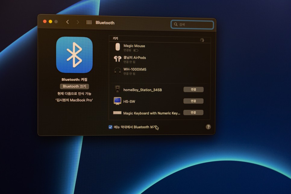 그냥 책상에 안착시키고 환경설정에서 블루투스에 들어갔는데