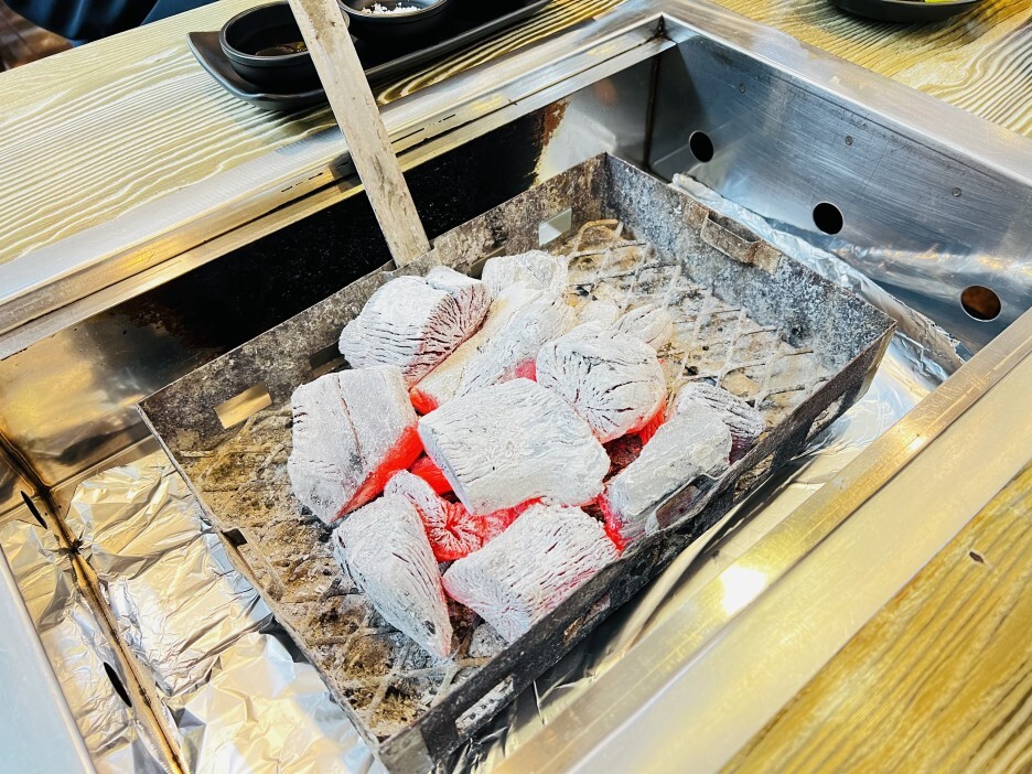 주문을 하면 먼저 불판에 숯불을 넣어준다.