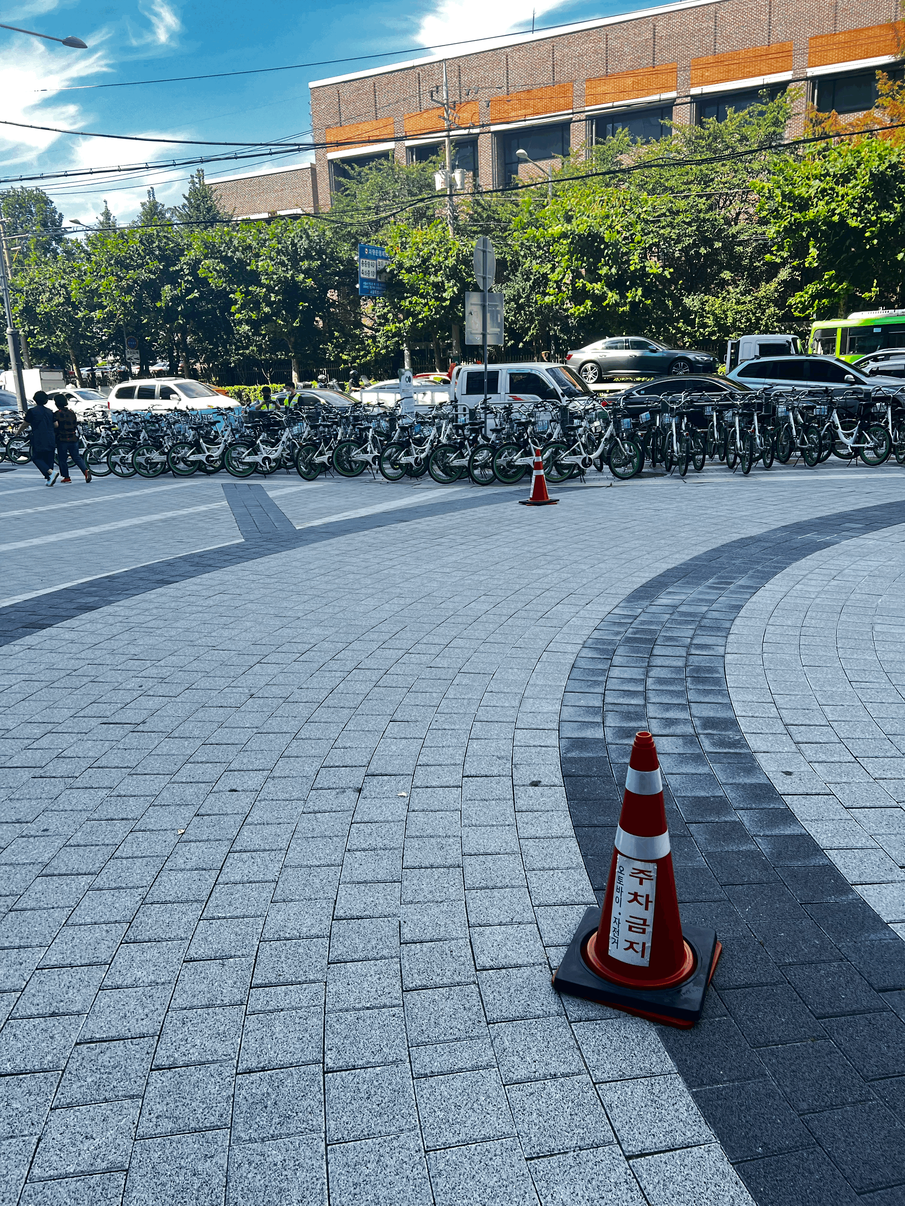 건물 앞에 따릉이 주차구역이 있으므로